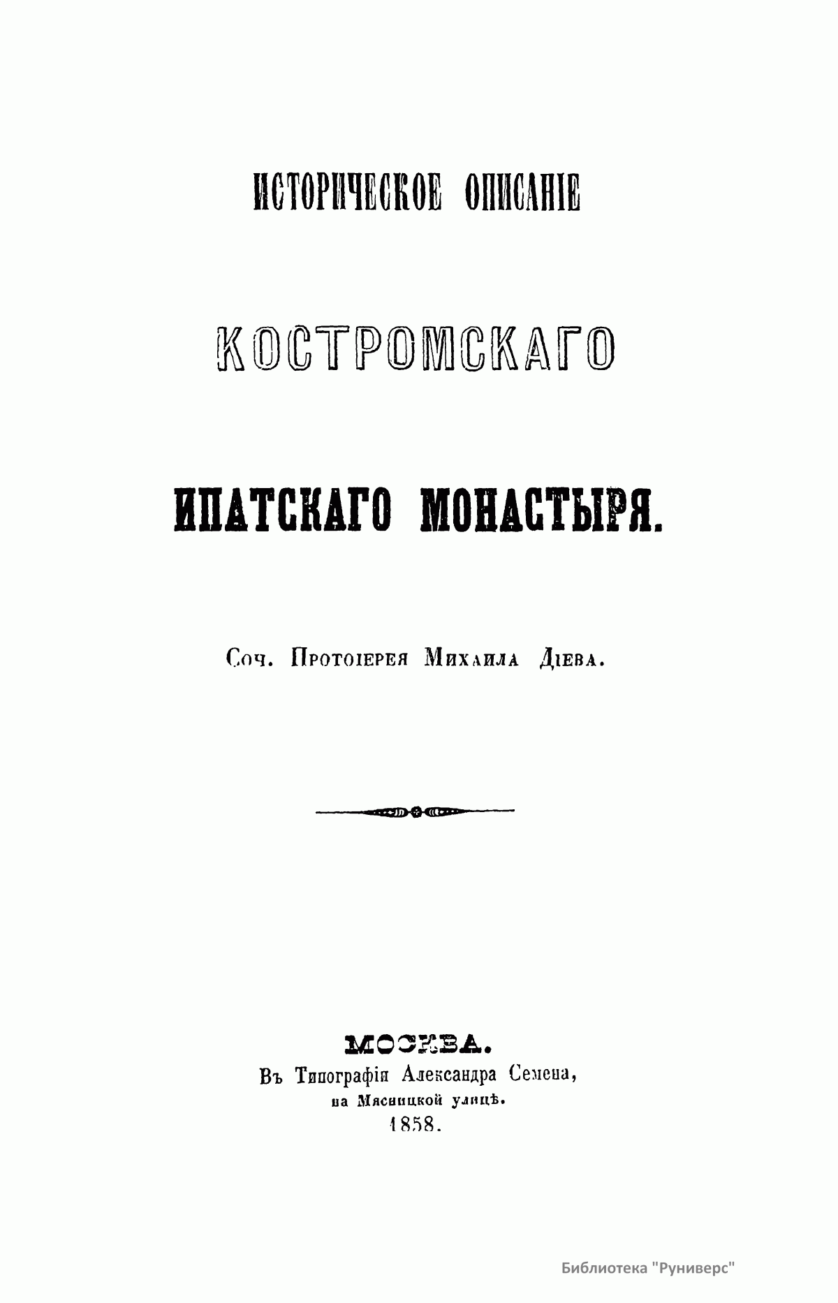 Историческое описанiе Костромскаго Ипатскаго монастыря