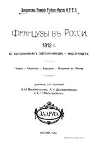 Французы въ Россiи. 1812 г. По воспоминанiямъ современниковъ-иностранцевъ
