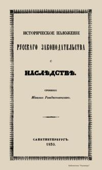 Историческое изложение русского законодательства о наследстве