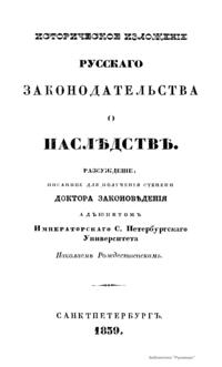 Историческое изложенiе русскаго законодательства о наслѣдствѣ