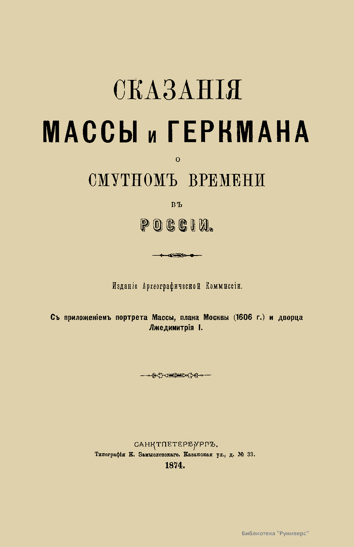 Сказанiя Массы и Геркмана о Смутномъ времени въ Россiи
