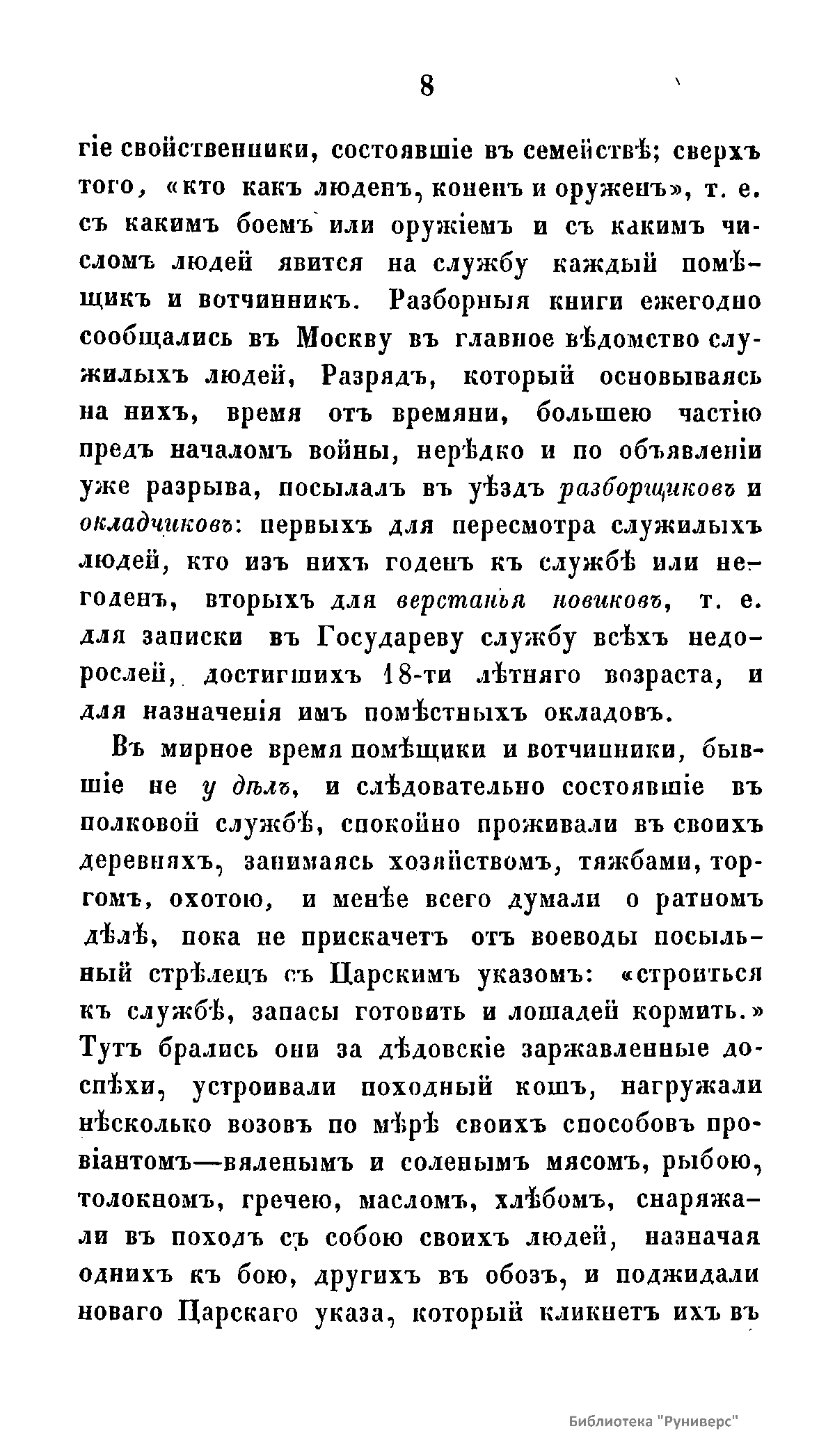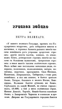 Издание представляет собой историческое исследование Н. Устрялова от 1856 года, посвященное устройству русского войска в период до реформ Петра Великого. Автор анализирует противоречие между хвастливыми отчетами послов о «несметной рати» и фактическим состоянием вооруженных сил, подчеркивая неравномерность их подготовки. В изд подробно описаны различные категории воинов: от наследственных стрельцов и дворянского ополчения до первых полков иноземного строя, созданных при Михаиле Федоровиче и Алексее Михайловиче. Особое внимание уделяется роли иностранных офицеров, которые нанимались для обучения пехоты, рейтар и драгун западным военным тактикам. Устрялов рассматривает быт служилых людей, систему землевладения и ежегодные сборы, выявляя недостатки старой системы, такие как плохая дисциплина и слабая артиллерия. Завершается обзор выводом о том, что допетровская армия держалась на преданности вере и родине, но остро нуждалась в научном подходе и профессиональном реформировании.