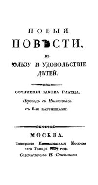 Второе издание весьма популярной в свое время детской книги предваряется предисловием автора: «Второе издание сей книжечки мною исправлено и умножено двумя вновь прибавленными к прежним повестями. Желаю, чтобы и сие издание принято было столь же благосклонно, как и первое». Русский переводчик, не пожелавший указывать своего имени, также приписывает к этому несколько слов, где «желает только, чтобы перевод его не был исключен из числа книг, назначенных почтенными родителями для чтения их детям и воспитанникам», а также поясняет, что немецкие стихотворения, приложенные к рассказам в этой книге, он по своей воле заменил на «оригинальные, писанные известными стихотворцами нашими». Очевидно, переводчик посчитал, что детям полезнее будет ознакомиться с образцами русской романтической поэзии, нежели немецкой.