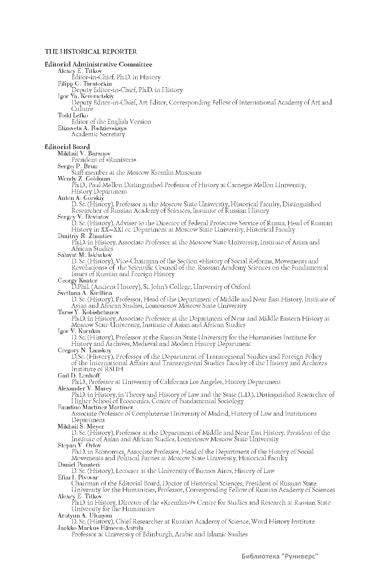 Дорогие коллеги, мы представляем вам первый номер «Исторического вестника», который одновременно обозначается 148-м томом, тем самым продолжая дореволюционное издание. Однако, перешагивая почти сто лет, мы понимаем, что реалии XXI века определяют и новое содержание журнала. История сегодня во многом актуализирована политикой. Именно геополитическая ситуация в мире, возвращающая нас к вопросам сохранения существующих границ, национальных и культурных ценностей, моральных и религиозных принципов, формирует еще одно измерение — проблему аутентичного исторического бытования народов и государств. С одной стороны, это вопрос географических ареалов государственных образований, с другой — тема, связанная с соприкосновением, взаимодействием процессов, культур и традиций. Во многом мы стоим и перед важнейшей этической проблемой. Мы должны не только вежливо и настойчиво указывать нашим уважаемым соседям на свои исторические права, но и сами уходить от искушения искусственного удревнения собственной истории или присвоения чужой. И здесь на сцену выходит его величество Исторический Научный Факт. Он и есть главный цензор и законодатель. На этом незыблемом основании будет строиться редакционная и научная работа «Исторического вестника».