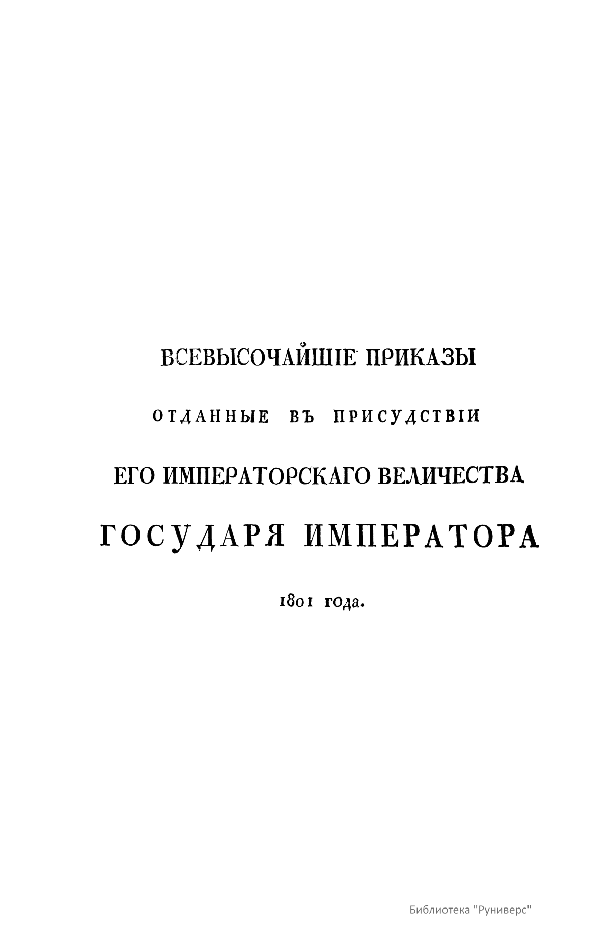 Всевысочайшие приказы, отданные в присутствии Его Императорского Величества Государя Императора, со вступления его на Всероссийкий престол. 1801