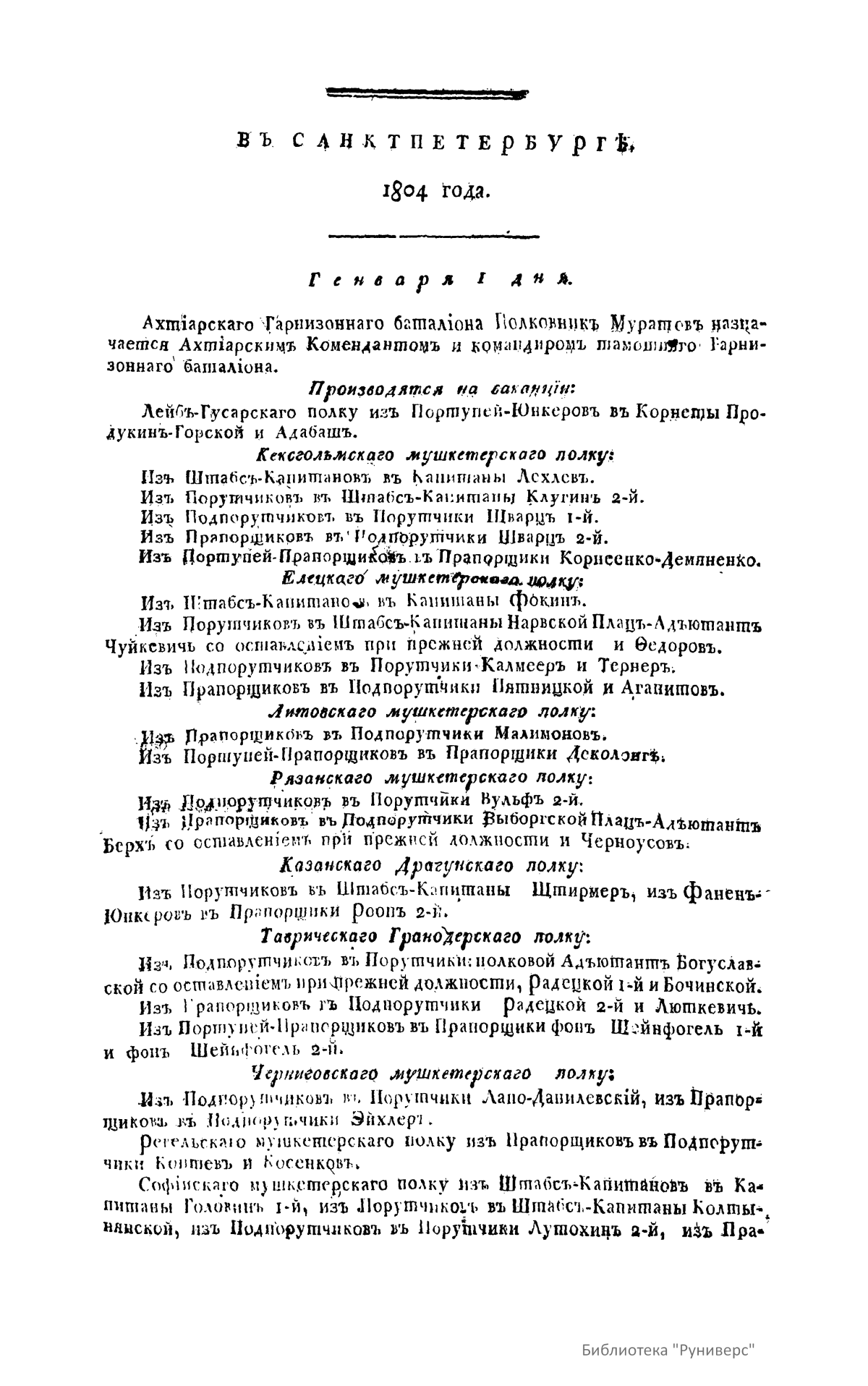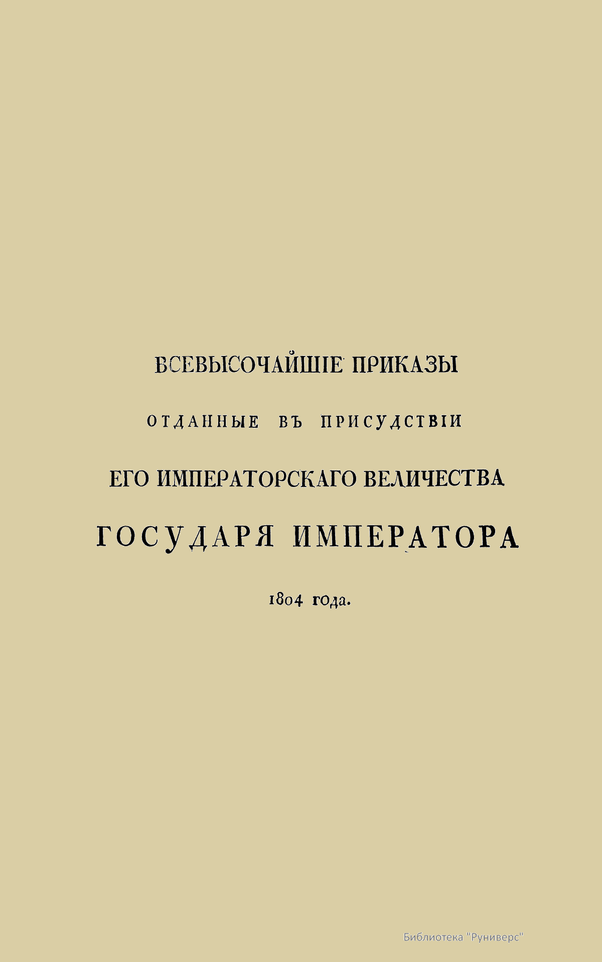 Всевысочайшие приказы, отданные в присутствии Его Императорского Величества Государя Императора, со вступления его на Всероссийкий престол. 1804