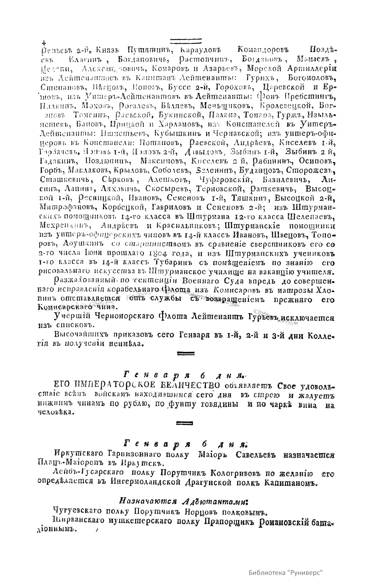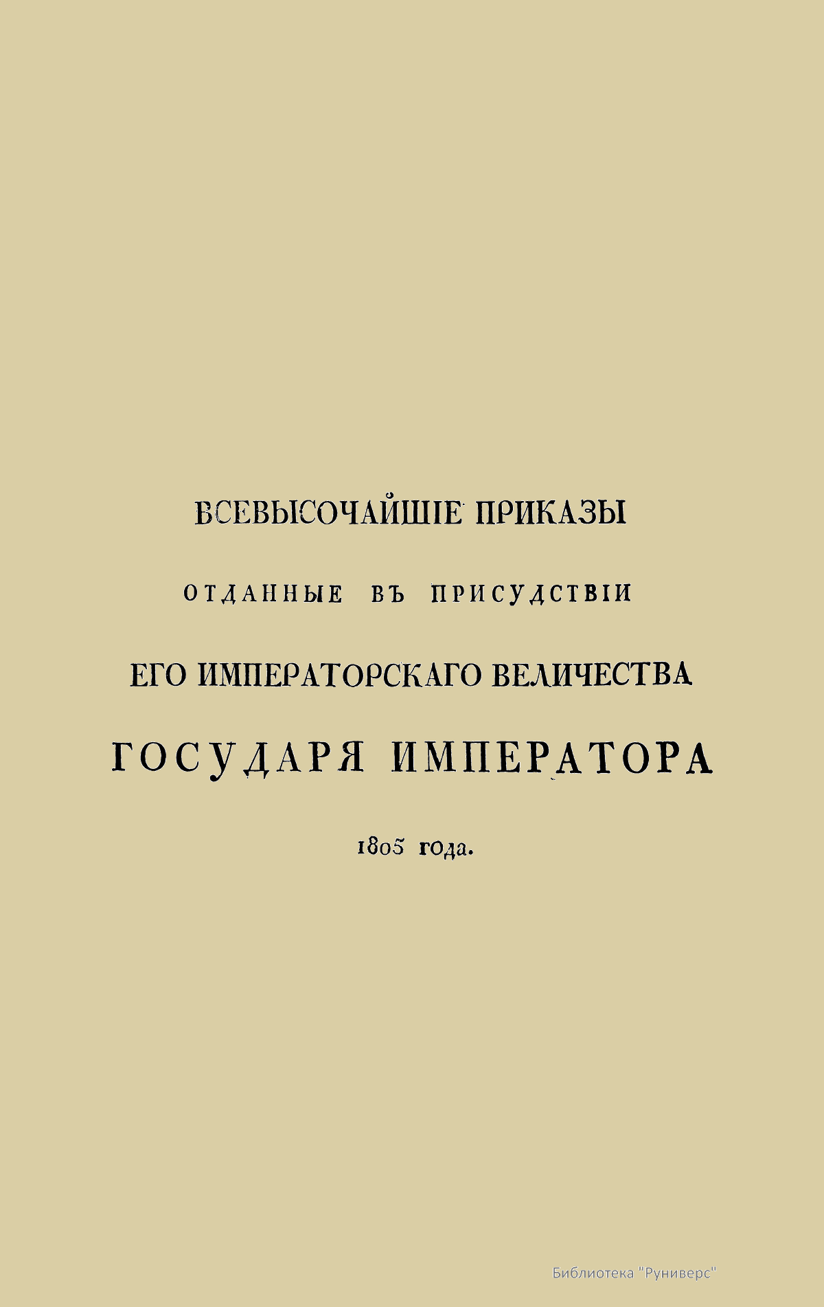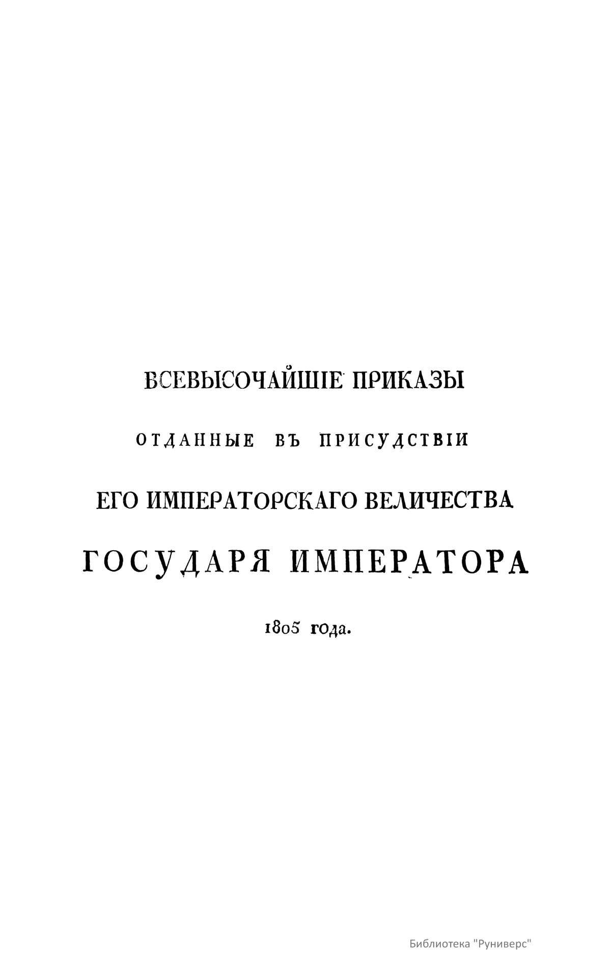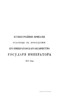 Всевысочайшие приказы, отданные в присутствии Его Императорского Величества Государя Императора, со вступления его на Всероссийский престол. 1805