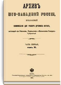 В серии «Архив Юго-Западной России» были напечатаны документы Киевского архива. Издание было предпринято Киевской археографической комиссией с 1859 по 1911 год. Всего вышло 34 тома.