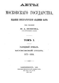 Том I. Разрядный приказ. Московский стол. 1571-1634.