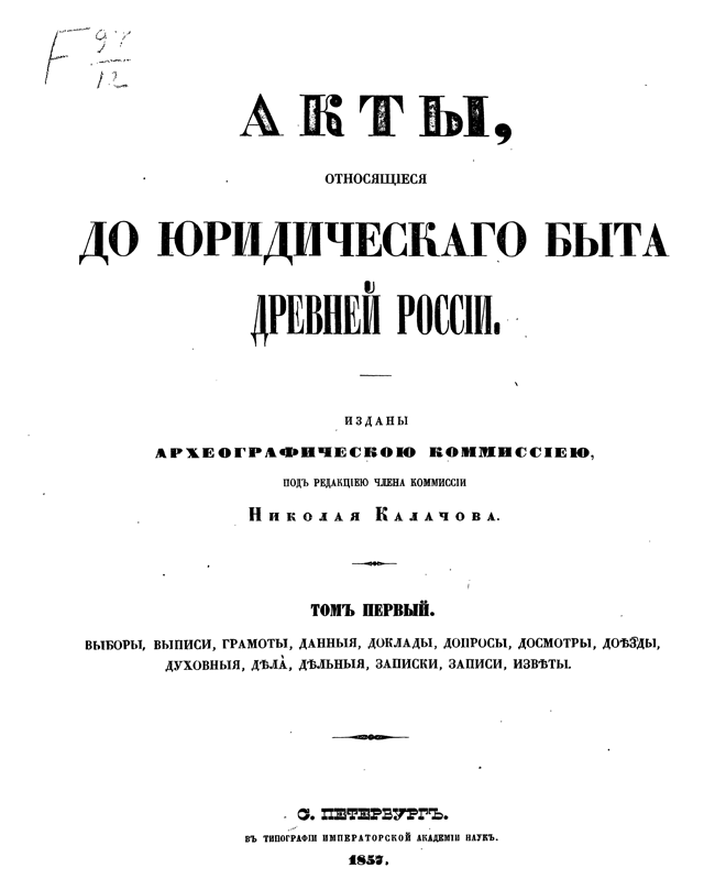 Акты, относящиеся до юридического быта Древней России