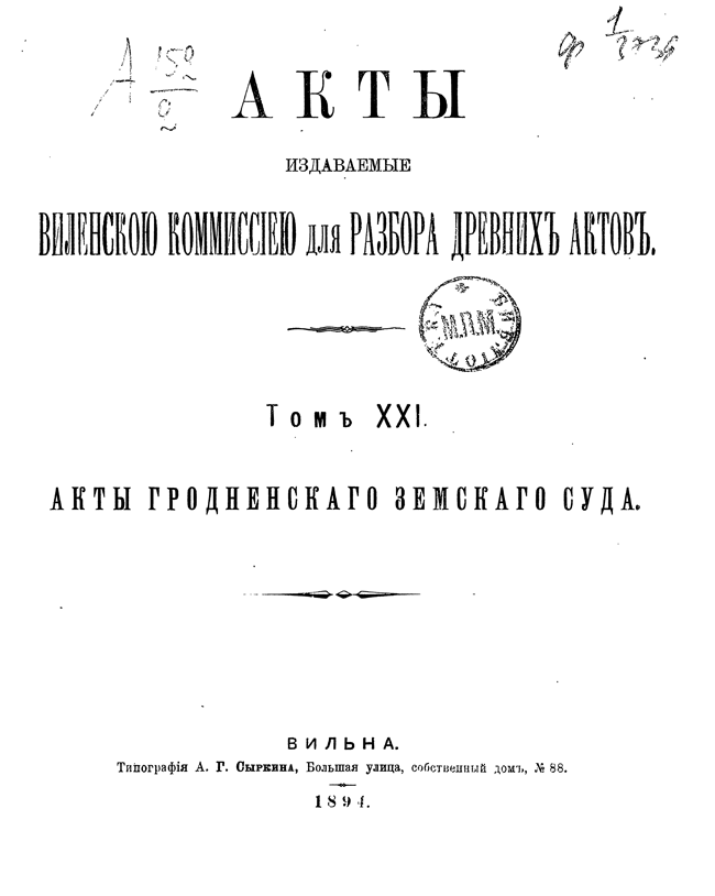 Акты Виленской археографической комиссии: Том XXI.