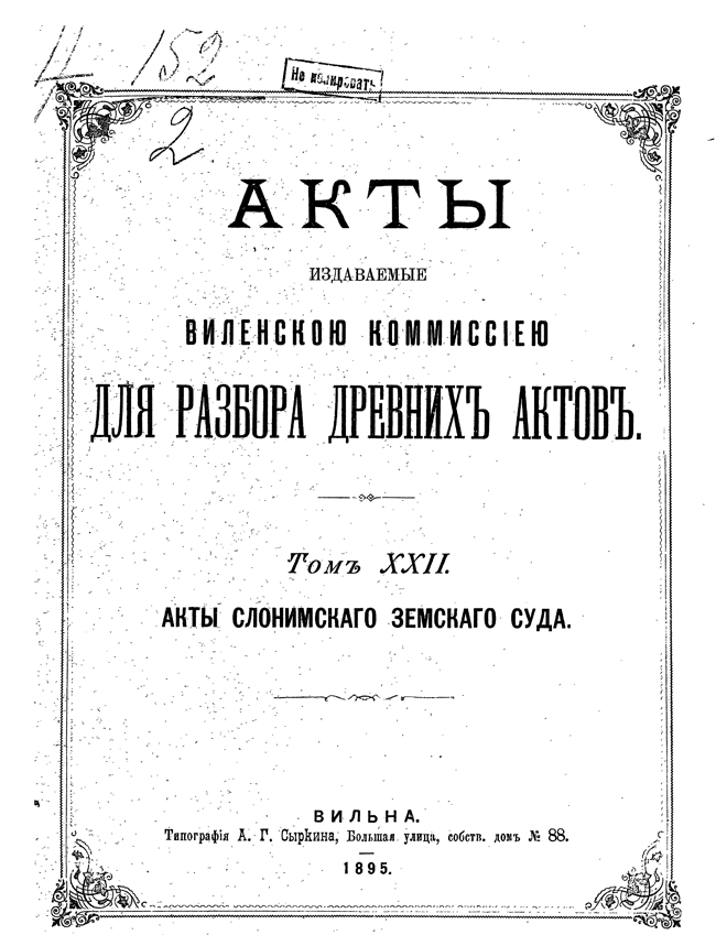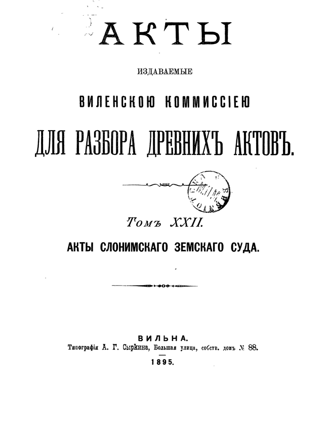 Акты Виленской археографической комиссии: Том XXII.