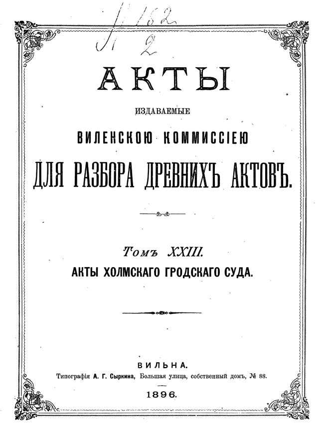 Обилие актов и документов Виленского центрального архива (19244 актовых книг) и желание исследовать прошлое Литвы, которая и в старину принадлежала России, вызвали после 1863 года учреждение особой комиссии для разбора в городе Вильне древних актов.