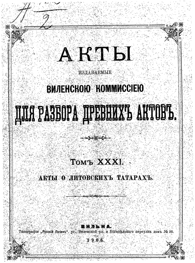 Обилие актов и документов Виленского центрального архива (19244 актовых книг) и желание исследовать прошлое Литвы, которая и в старину принадлежала России, вызвали после 1863 года учреждение особой комиссии для разбора в городе Вильне древних актов.