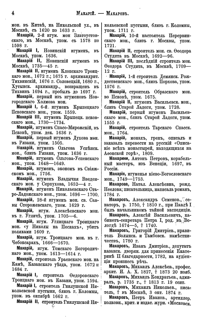 Первая попытка Русского Исторического Общества составить биографический словарь важных отечественных деятелей. Носила подготовительный характер и представляет собой просто список имен, с указанием срока жизни и основного занятия.