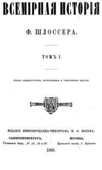 «Всемирная история» Шлоссера сыграла заметную роль в истории развития общественной мысли в России. В переводе на русский язык и популяризации его трудов принимал деятельное участие Н. Г. Чернышевский.
