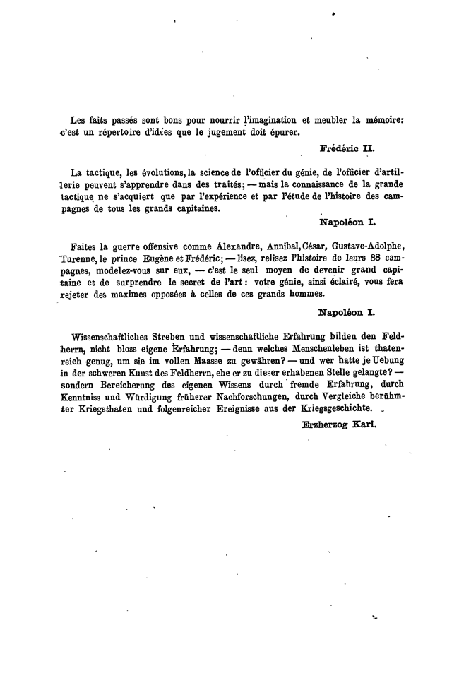 «Всеобщая военная история средних времен» состоит из двух частей. Первая посвящена историческим событиям от падения Западной Римской Империи до смерти Карла Великого, образовавшего обширную империю франков (476-814). Вторая часть рассказывает об истории следующего периода — от смерти Карла Великого до первоначального введения огнестрельного оружия (814-1350).