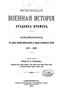 Свой капитальный труд «Всеобщая военная история» в 15 томах князь Николай Сергеевич Голицын создал в 1838-47 годах в период профессорско-преподавательской работы в Императорской военной академии, где он руководил кафедрой стратегии и затем — военной истории. На протяжении двадцати лет со времени учреждения академии не существовало учебного пособия на русском языке по военной истории. Голицын, с разрешения академического и высшего начальства, делает первый шаг к восполнению недостатка в военной литературе. Работа Голицына явилась первой в России и Европе попыткой полного систематического изложения всеобщей военной истории и задумывалась автором как руководство к преподаванию и изучению этого предмета.