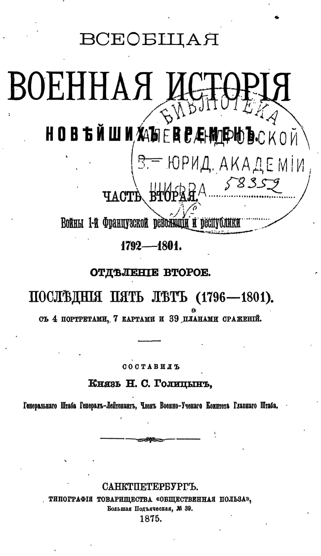 «Всеобщая военная история новейших времен» подробно описывает историю войн времен французской революции и республики, а также включает в себя уникальное собрание биографий военачальников