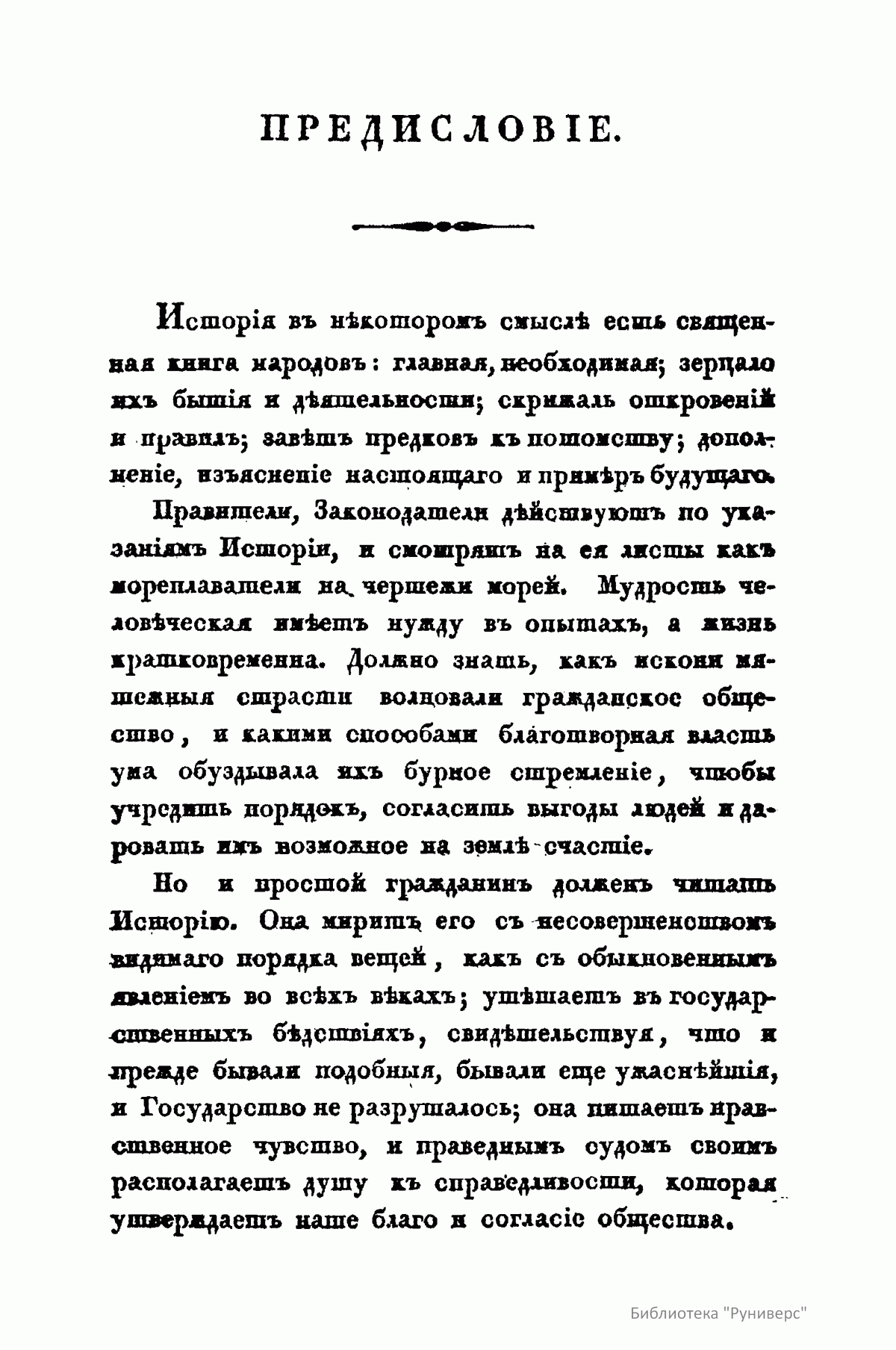 В 1816 году он выпустил первые восемь томов «Истории государства Российского», трёхтысячный тираж которых разошелся в течение месяца. В последующие годы вышли еще три тома «Истории», появился ряд переводов её на главнейшие европейские языки. Тенденциозно-монархическое освещение русского исторического процесса сблизило Карамзина с двором и царем, поселившим его подле себя в Царском Селе. Незаконченный XII том был издан уже после его смерти.