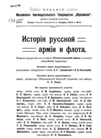 «История» рисует картину постепенного развития русского военного дела. С особым вниманием издание останавливается на наиболее выдающихся боевых эпизодах, интересуясь в тоже время организацией, бытом, вооружением и боевой подготовкой наших войск, в связи с политической жизнью государства. «История русской армии и флота» по своим размерам ( до 170 печатных листов) значительно превосходит прежние издания этого рода. Снабженная большим количеством иллюстраций и фотографий, она предназначалась для просвещения и русского офицерства, и русского общества.