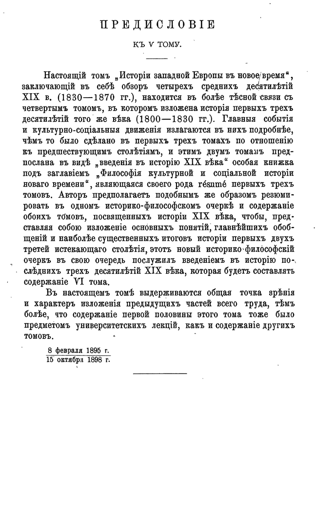 Первые тома вышли в начале девяностых годов 19 века и, посвященные- один «переходу от средних веков к новому времени», другой — «реформации и политической жизни в XVI и XVII вв.», третий — «XVIII веку и революции», — возникли из читанных им общих курсов новой истории, имевших своей целью выяснить значение двух главных переворотов в жизни европейского Запада за последние четыре века, т.е., реформации и революции — в связи с общим характером новой истории с её отличием от средневековой. Однако, позднее, Кареев решился раздвинуть границы первых задач и довести повествание до современнго ему положения дел.
