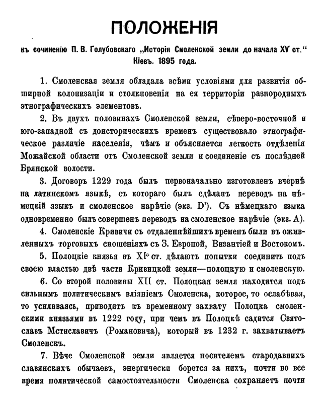 Ко времени написания данного труда, в отечественной историографии оставались не изучены две важные административные области древней Руси — смоленская и полоцкая. Автор взял на себя обязательство как можно более подробно, на основе всех известных источников, показать процесс становления и развития одного из могущественнейших княжеств, а также дальнейший переход Смоленщины под власть Литвы.