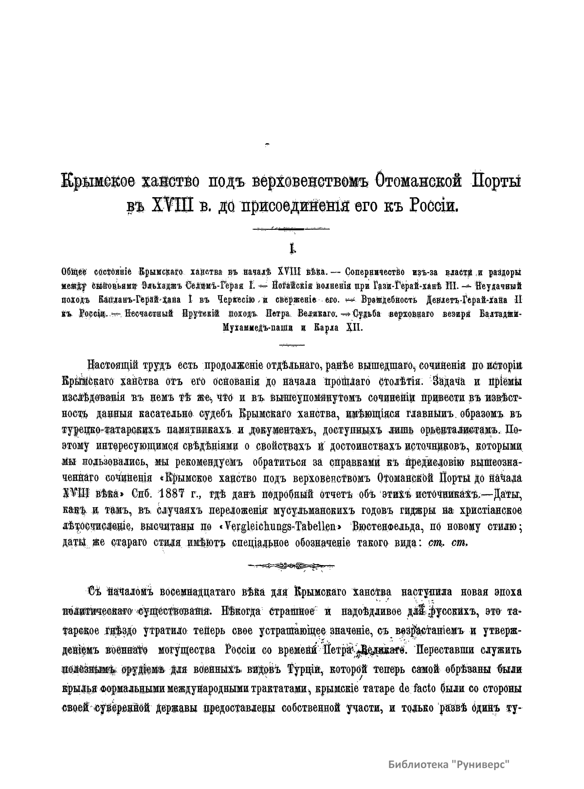 Крымское ханство под верховенством Оттоманской Порты в XVIII в. до присоединения его к России