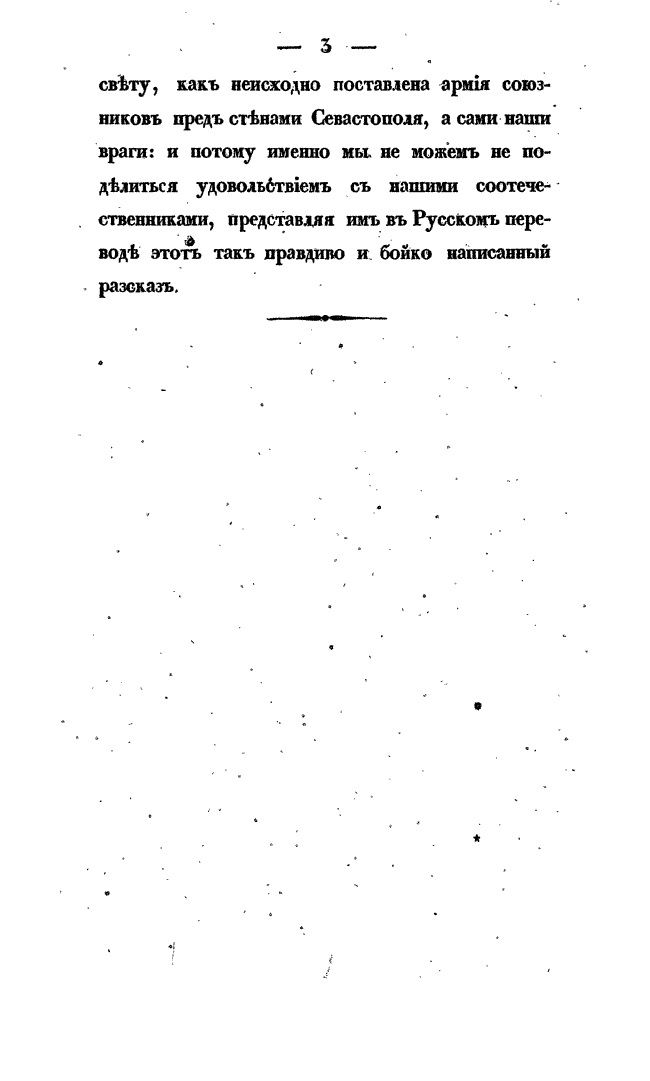 "Не мы открываем свету, как неисходно поставлена армия союзников пред стенами Севастополя, а сами наши враги, и потому именно мы не можем не поделиться удовольствием с нашими соотечественниками, представляя им в русском переводе этот так правдиво и бойко написанный рассказ".