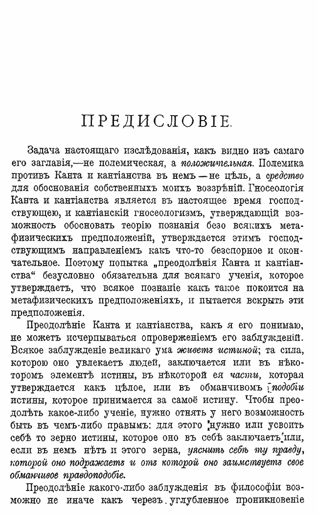 В предисловии к изданию автор определяет цель своего исследования: полемика против Канта является не целью, а средством обоснования его собственных воззрений. Необходимость подобной работы вызвана тем, что гносеология Канта является господствующей и утверждается как что-то бесспорное и окончательное. Философ стремится показать, что «Кантово солнце – познающий субъект» не есть самодовлеющий и независимый источник познания» и даже в низшей области рационального познания он заимствует свой свет от высшего над ним, центрального светила: от высших до низших ступений познания всё озарено светом Всеединого и Безусловного сознания. Книга включает: