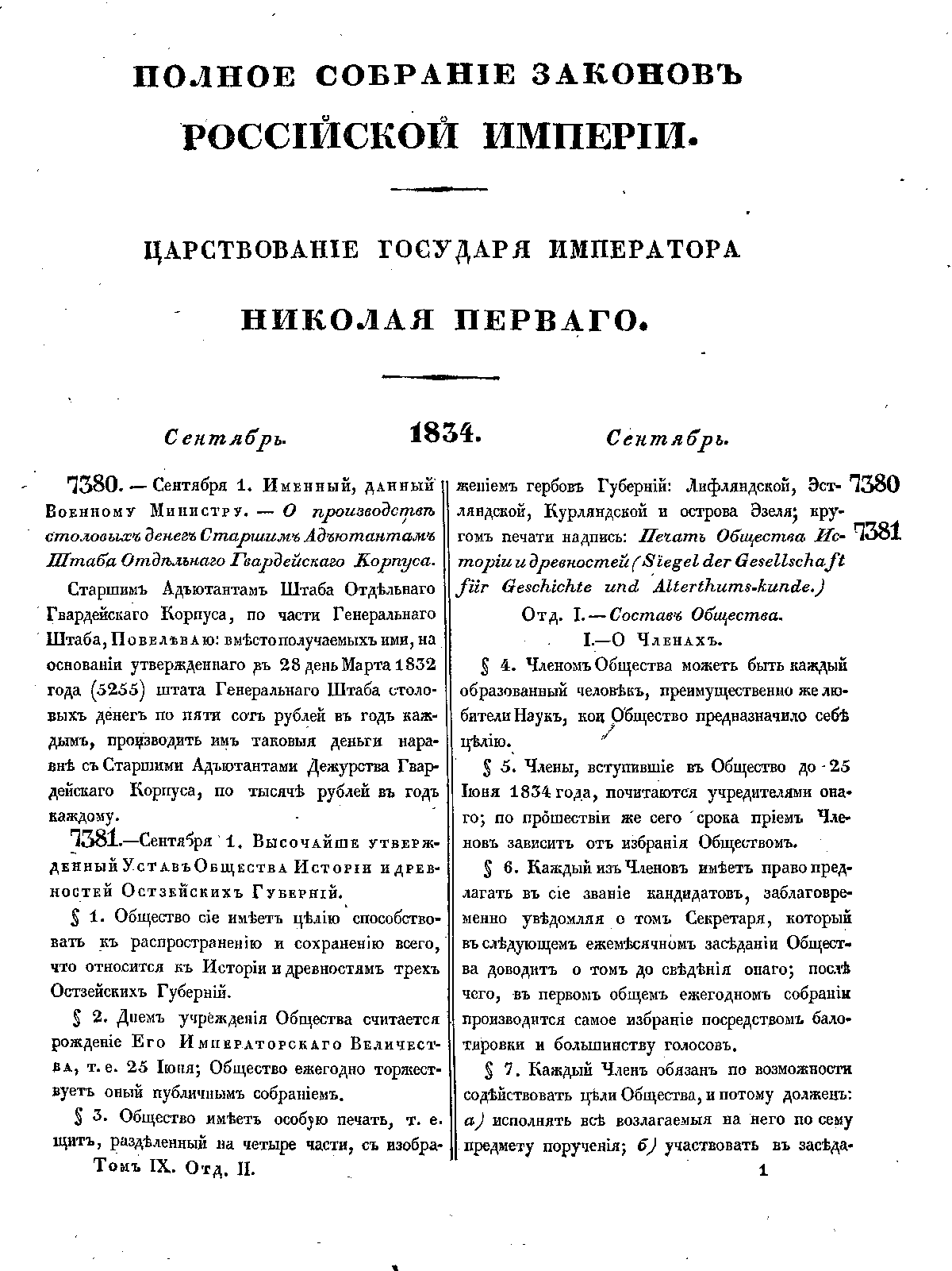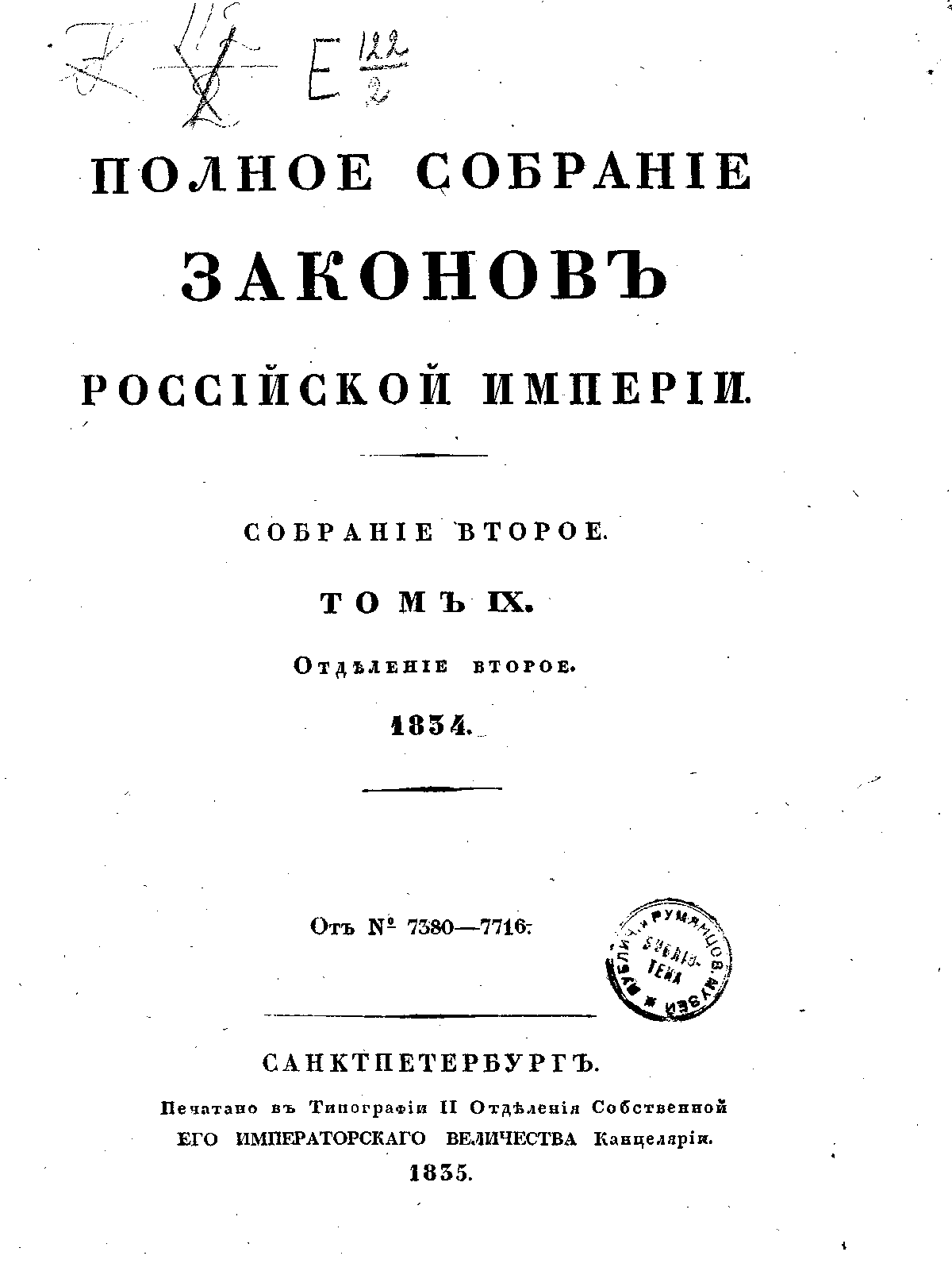Полное собрание законов Российской Империи. Собрание Второе. Том IX. Отделение 2