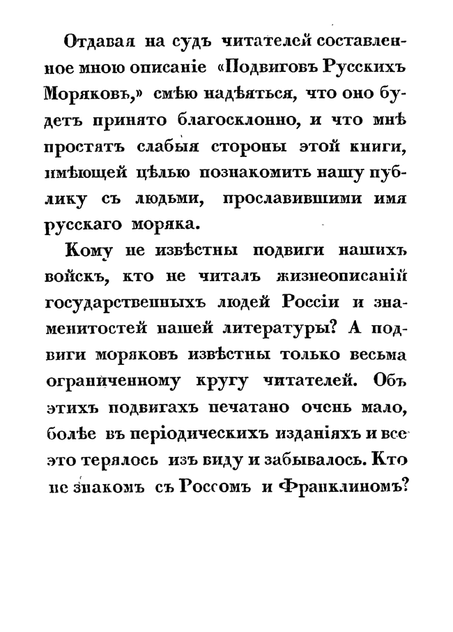 Лейтенант Василий Шульц при написании книги руководствовался целью познакомить публику с людьми, прославившими имя русского моряка. В отличие от государственных людей России и знаменитых литераторов подвиги моряков известны только весьма ограниченному кругу читателей. Ознакомившись с лучшими из них, Шульц составил несколько биографий офицеров русского флота. Автор поместил избранные биографии в свою книгу, снабдив их краткой историей основания русского флота.