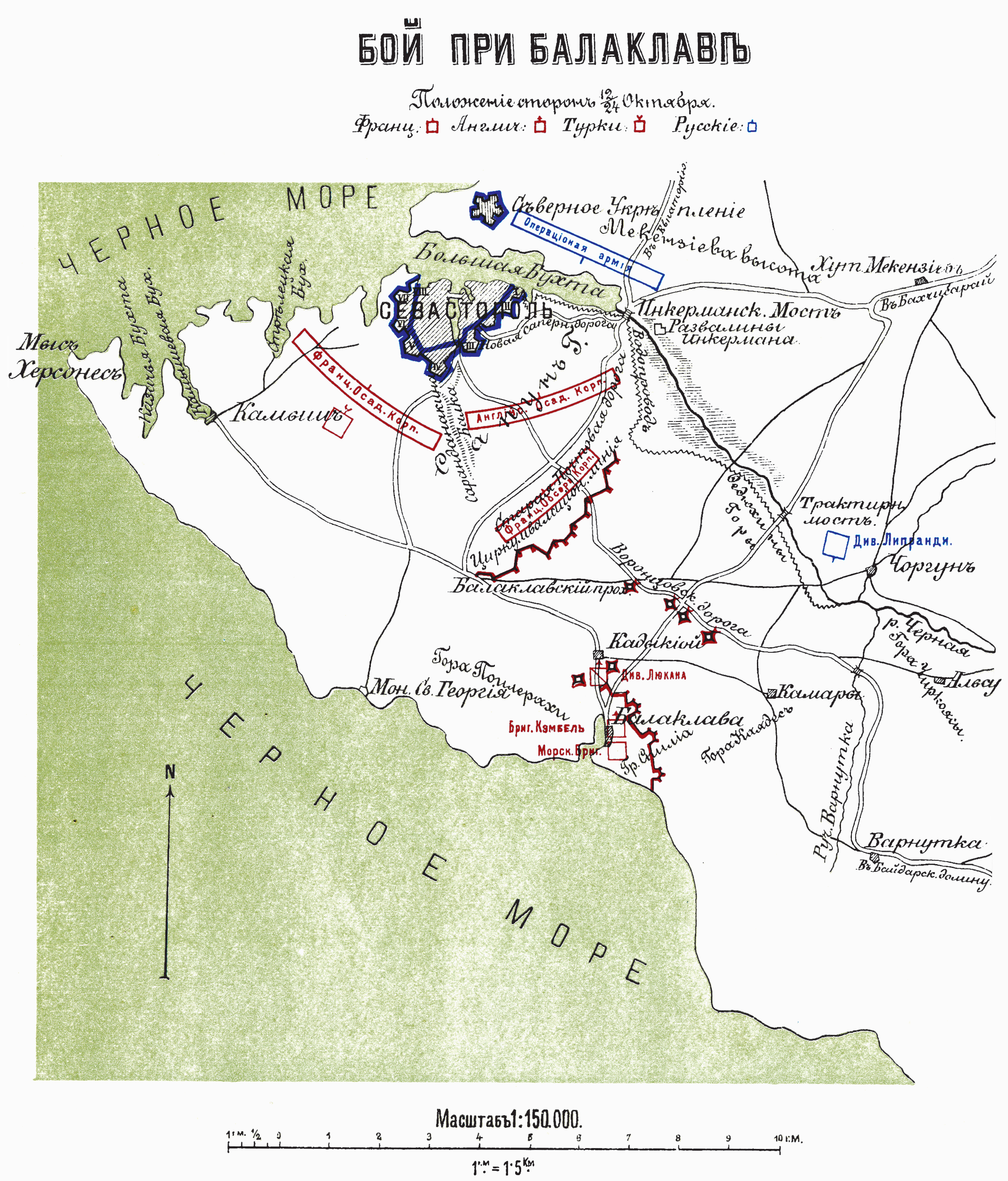 Бой при Балаклаве 13/25 октября 1854 г. Положение 12/24 октября