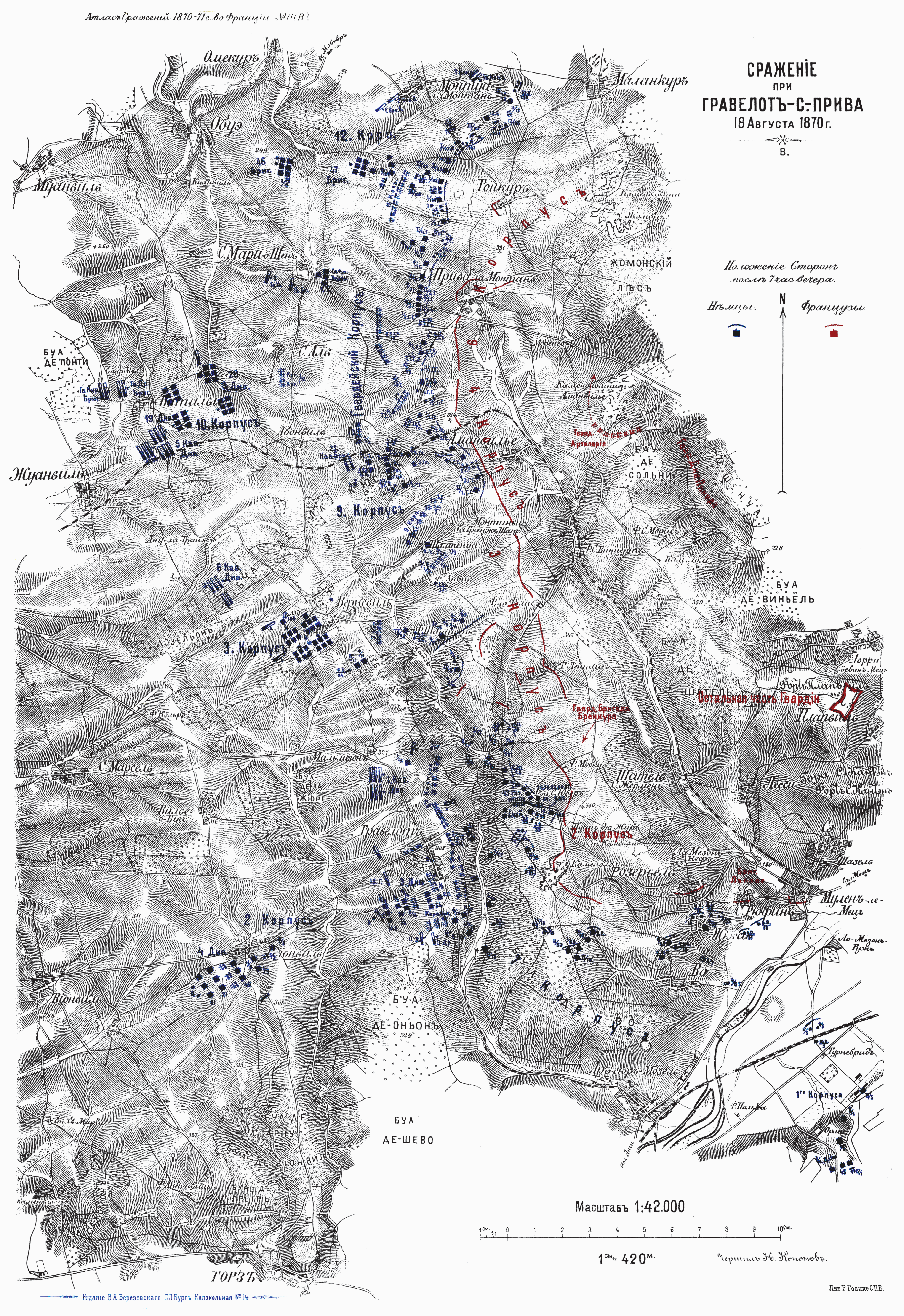 Сражение при Гравелот-С.-Прива 18 августа 1870 года. Положение сторон после 7 часов вечера