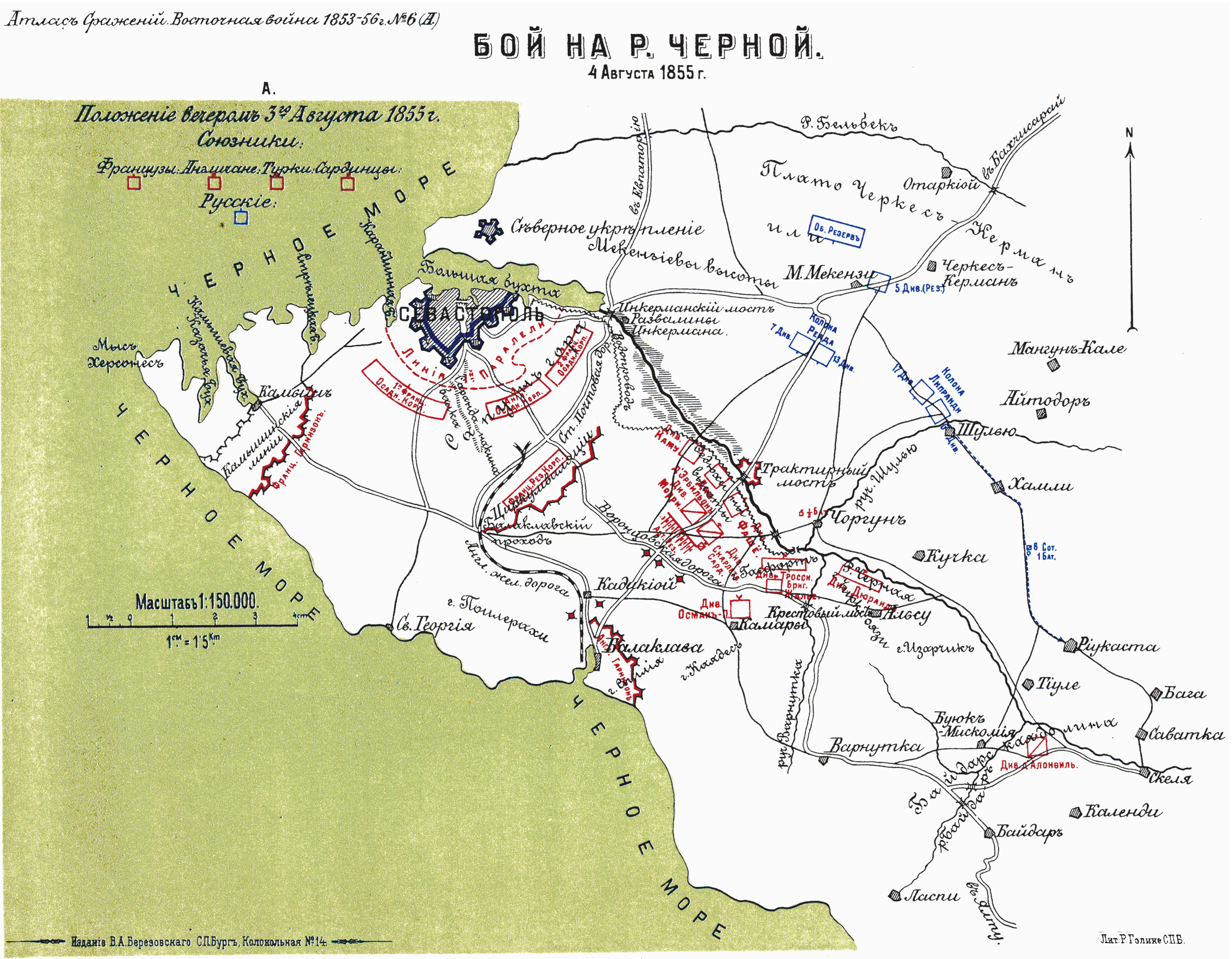 Бой на реке Черной 4 августа 1855 года. Положение вечером 3 августа 1855 года