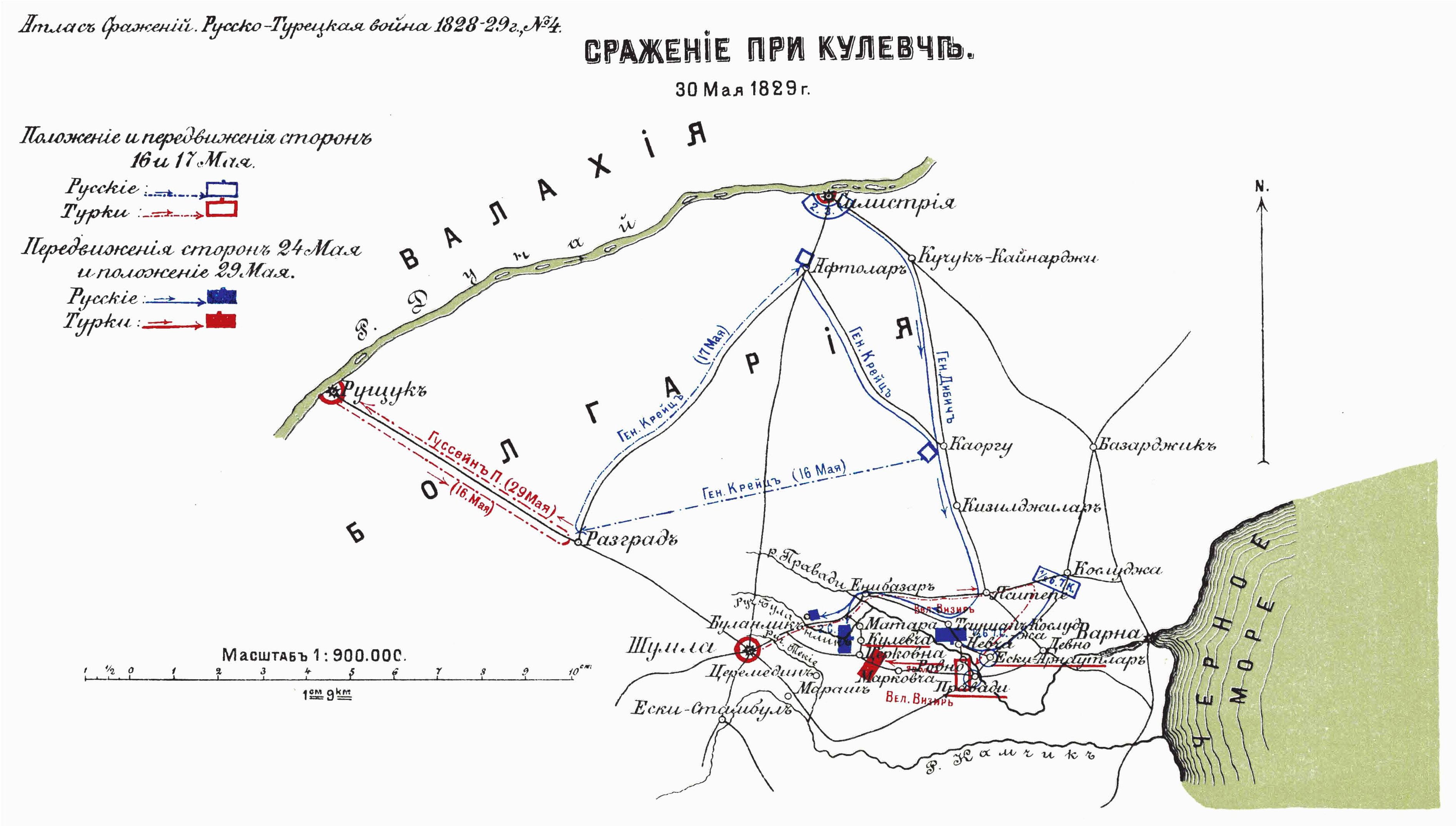 Сражение при Кулевиче. 30 мая 1829 года. Положение и передвижения сторон 16 и 17 мая