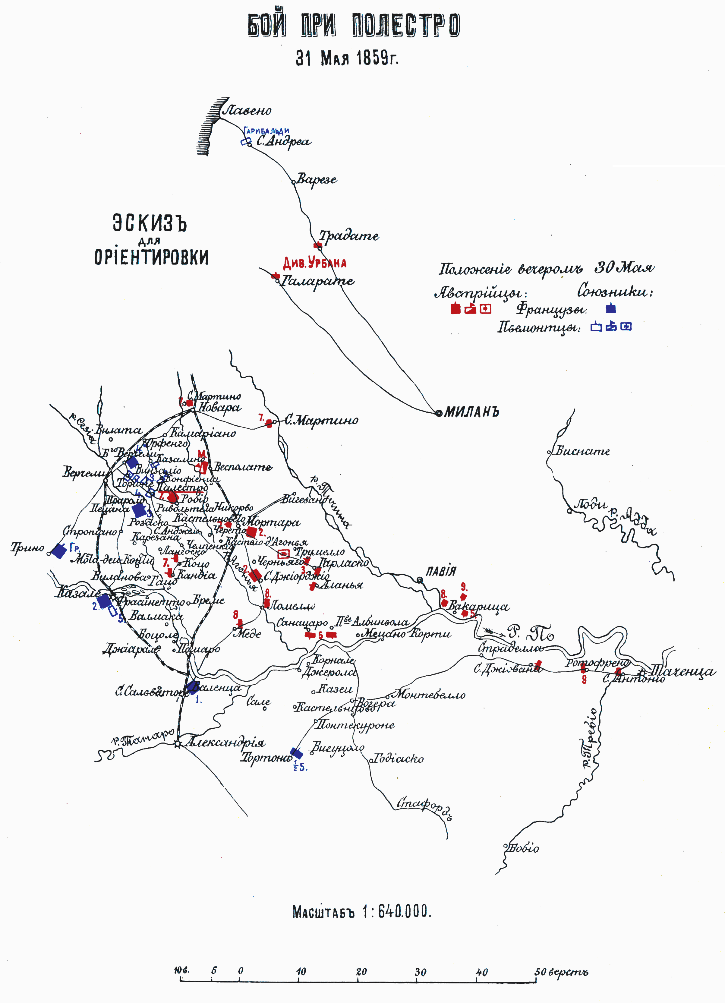 Бой при Полестро 31 мая 1859 года. Эскиз для ориентировки. Положение 30 мая