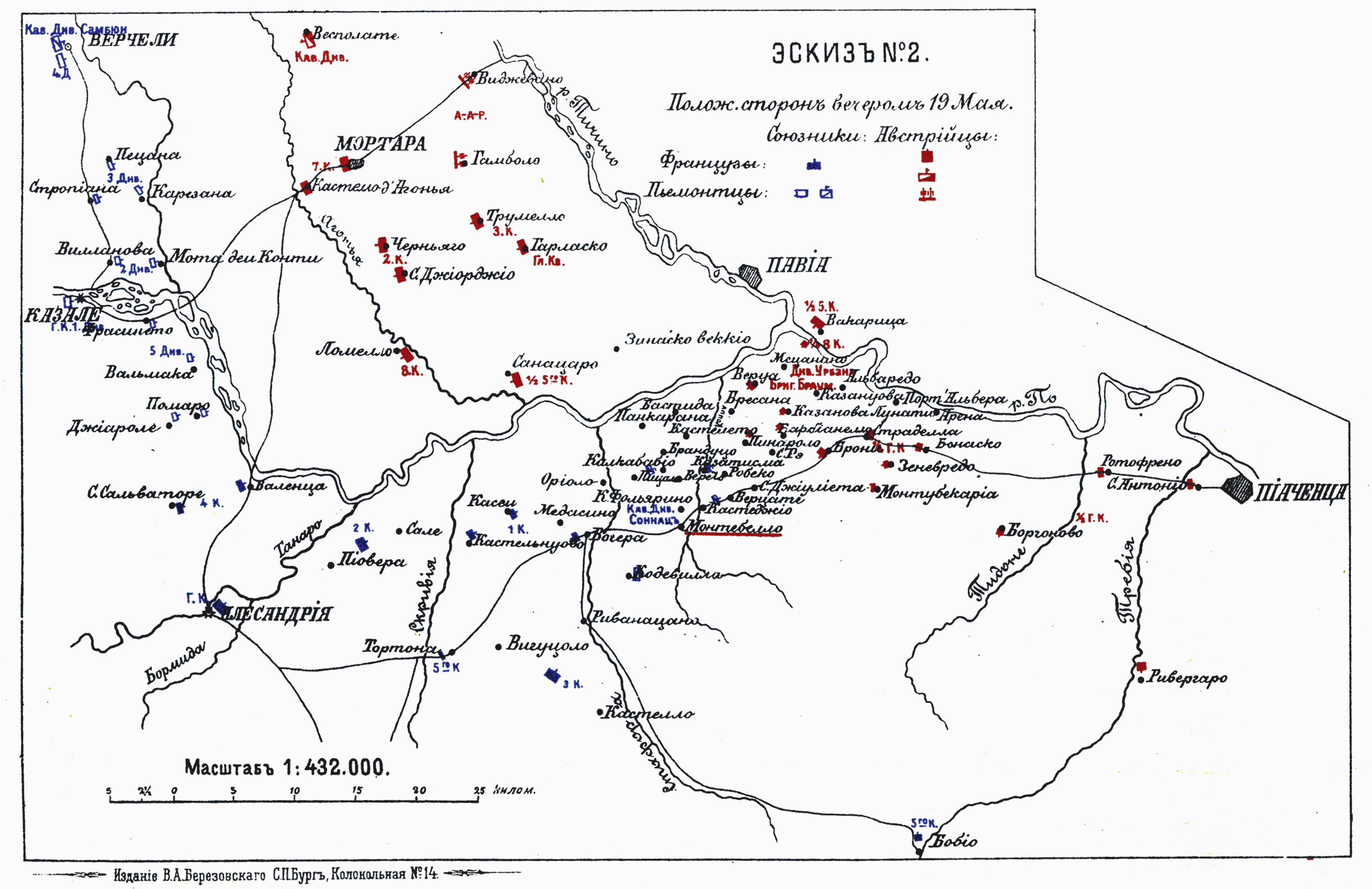 Бой при Монтебелло 20 Мая 1859. Эскиз №2. Положение сторон вечером 19 мая