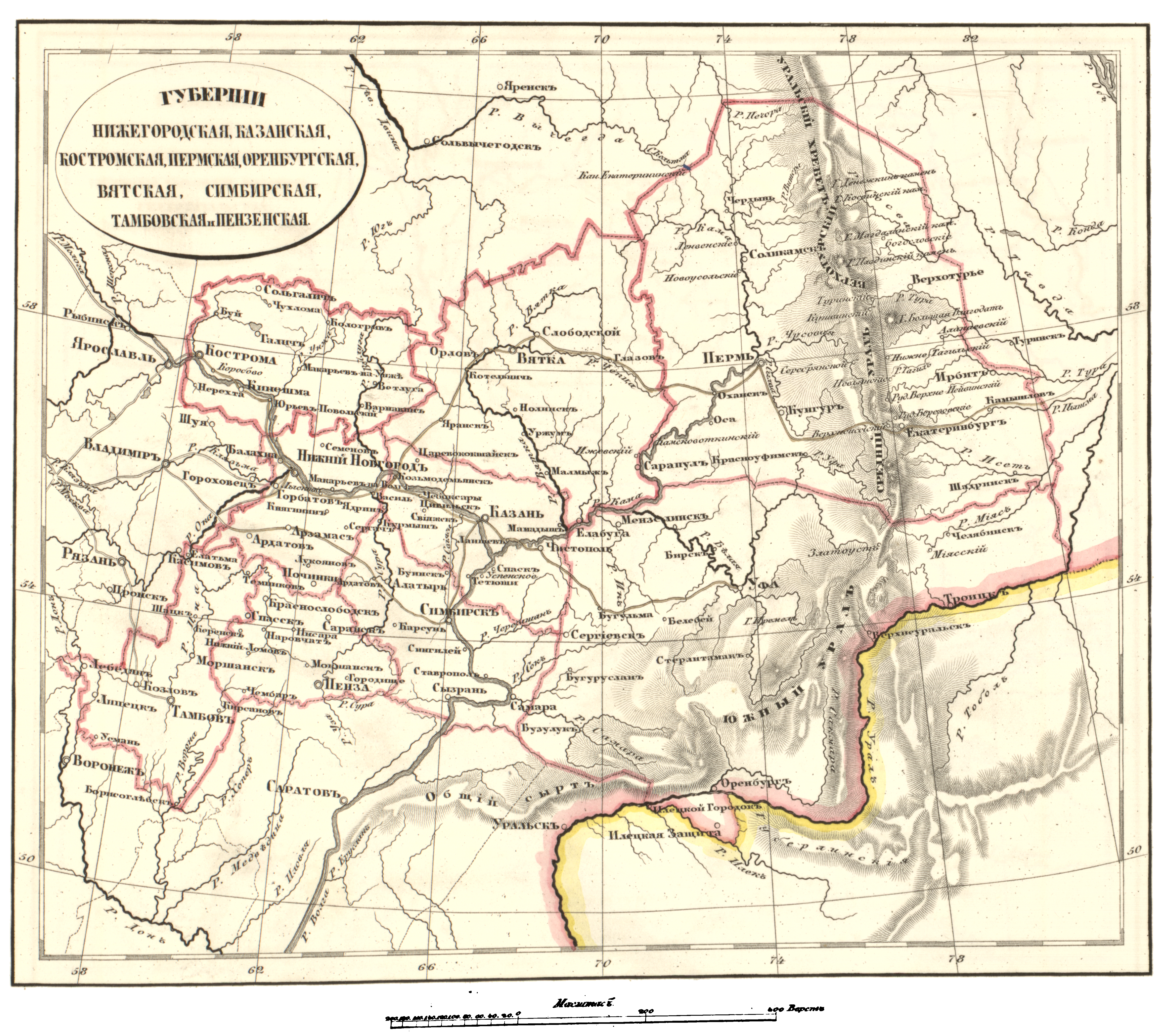 Губернии Нижегородская, Казанская, Костромская, Пермская, Оренбургская, Вятская Симбирская, Тамбовская и Пензенская