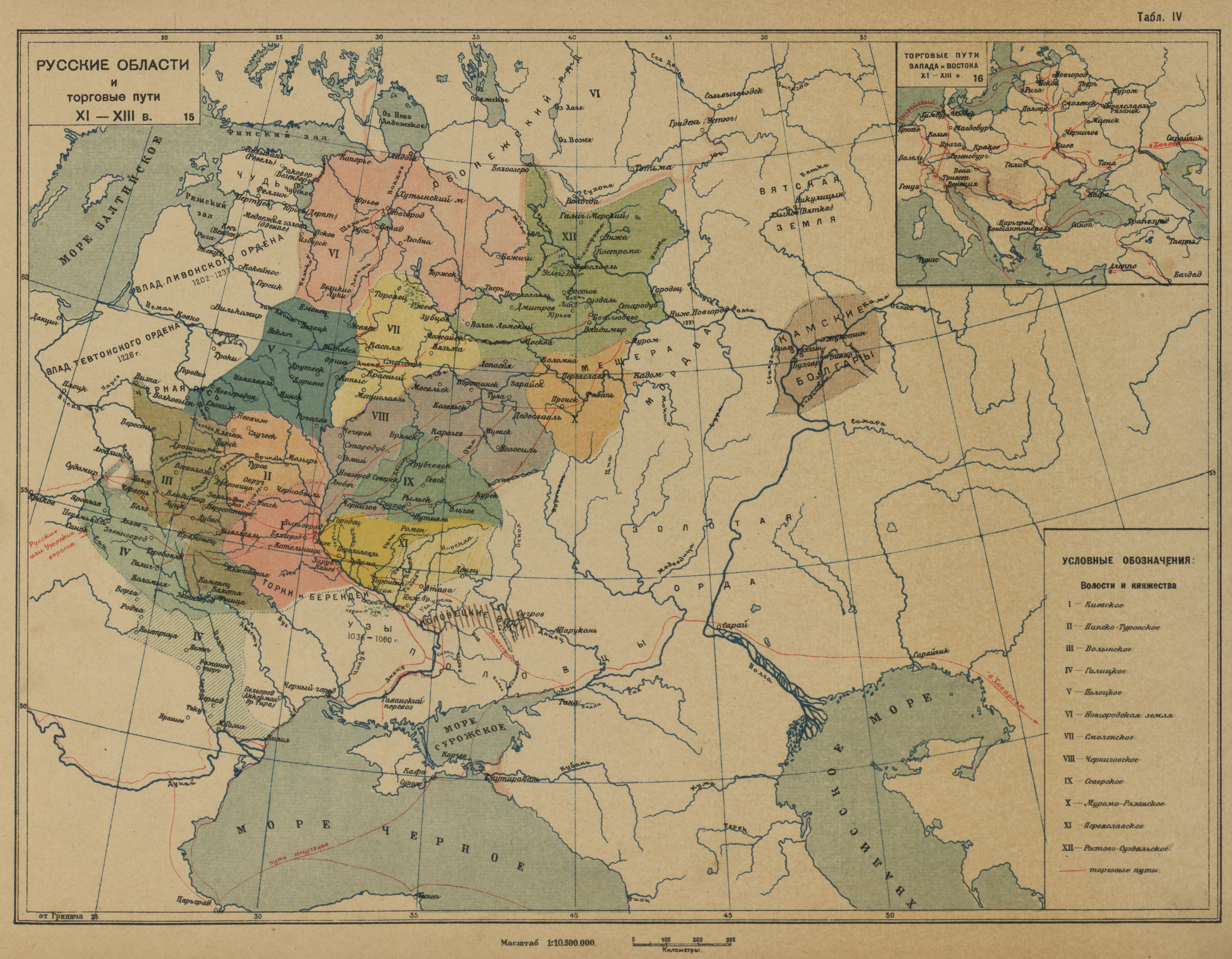Русский исторический атлас. Автор – Кудряшов Константин Васильевич, доктор исторических наук (1885–1962). Москва–Ленинград. 1928. В данном атласе, состоящем из 58 карт, автор обобщил свои работы по исторической географии за 15 лет. В построении данного атласа основное внимание автора было уделено экономической истории. Источниковедческий раздел, предшествующий графике, на котором базируется данный труд, достаточно обширен. При выходе в свет атлас получил первую премию от Экспертной комиссии Цекубу и ЦБ СНР.