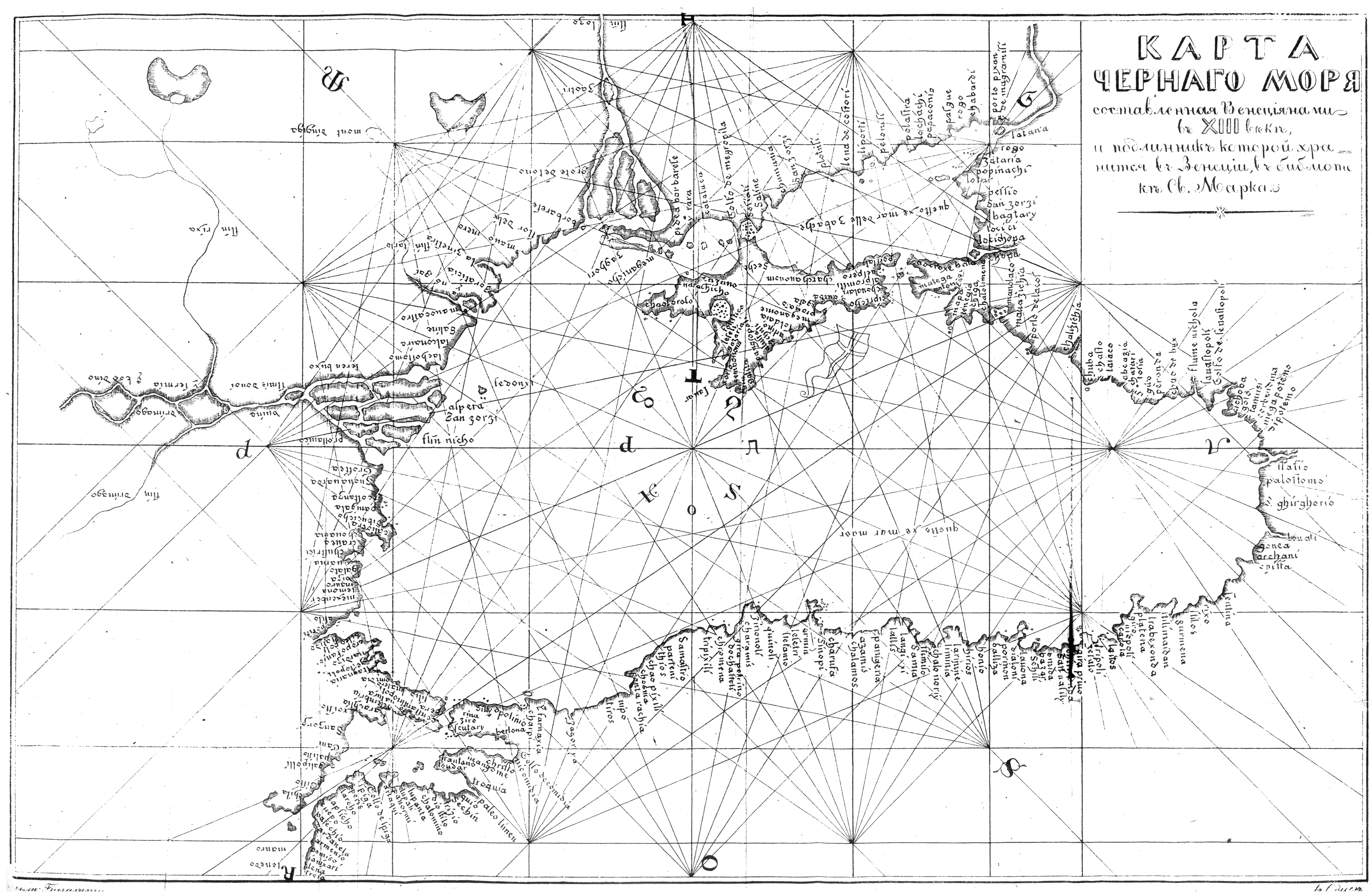 Карта Черного моря, составленная Венециянами в XIII веке и подлинник которой хранится в Венеции, в библиотеке Св.Марка.