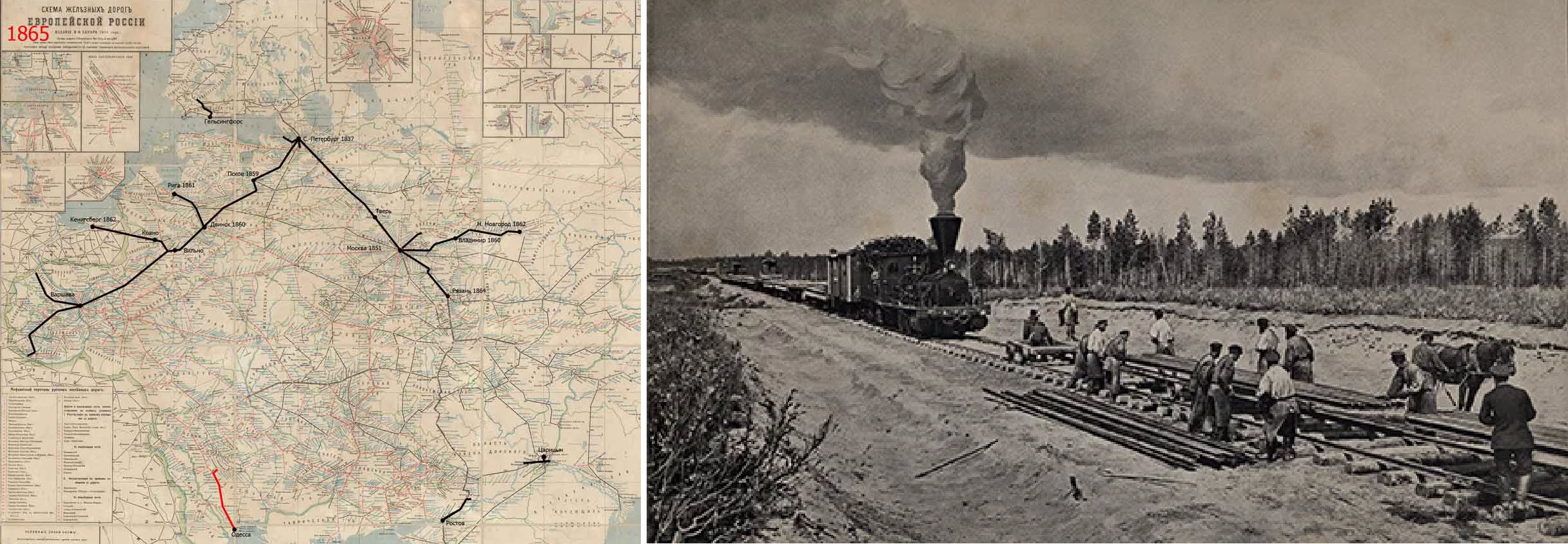 Карта железных дорог России на 1865 г.