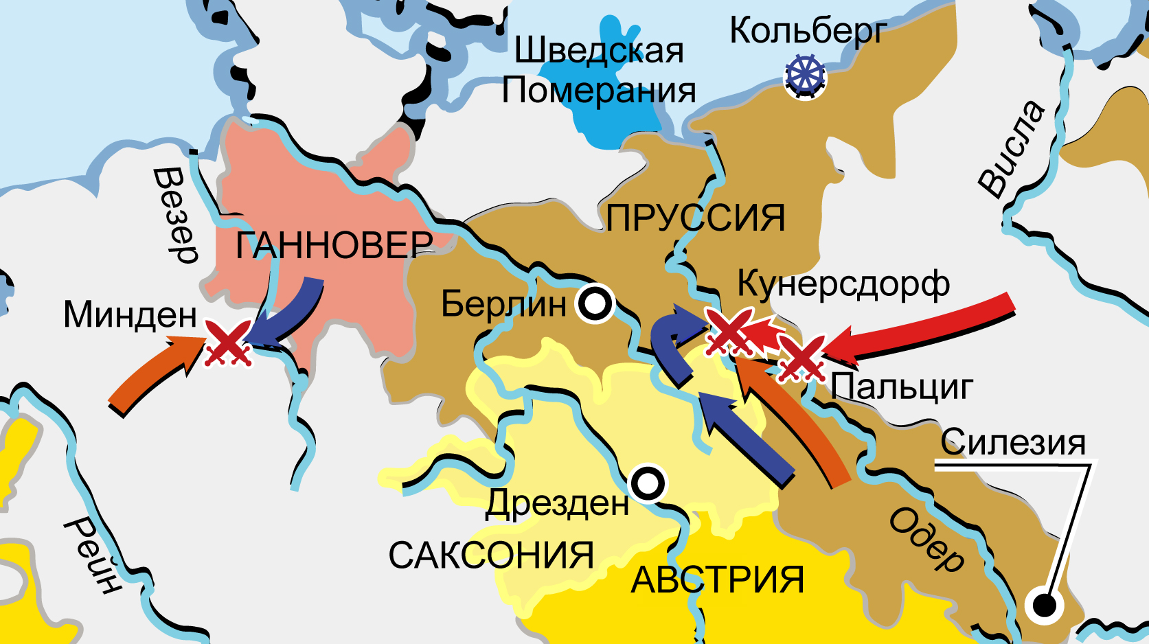 Полки Англии, Испании, Франции, Швеции, Австрии, Баварии, Саксонии, Пруссии