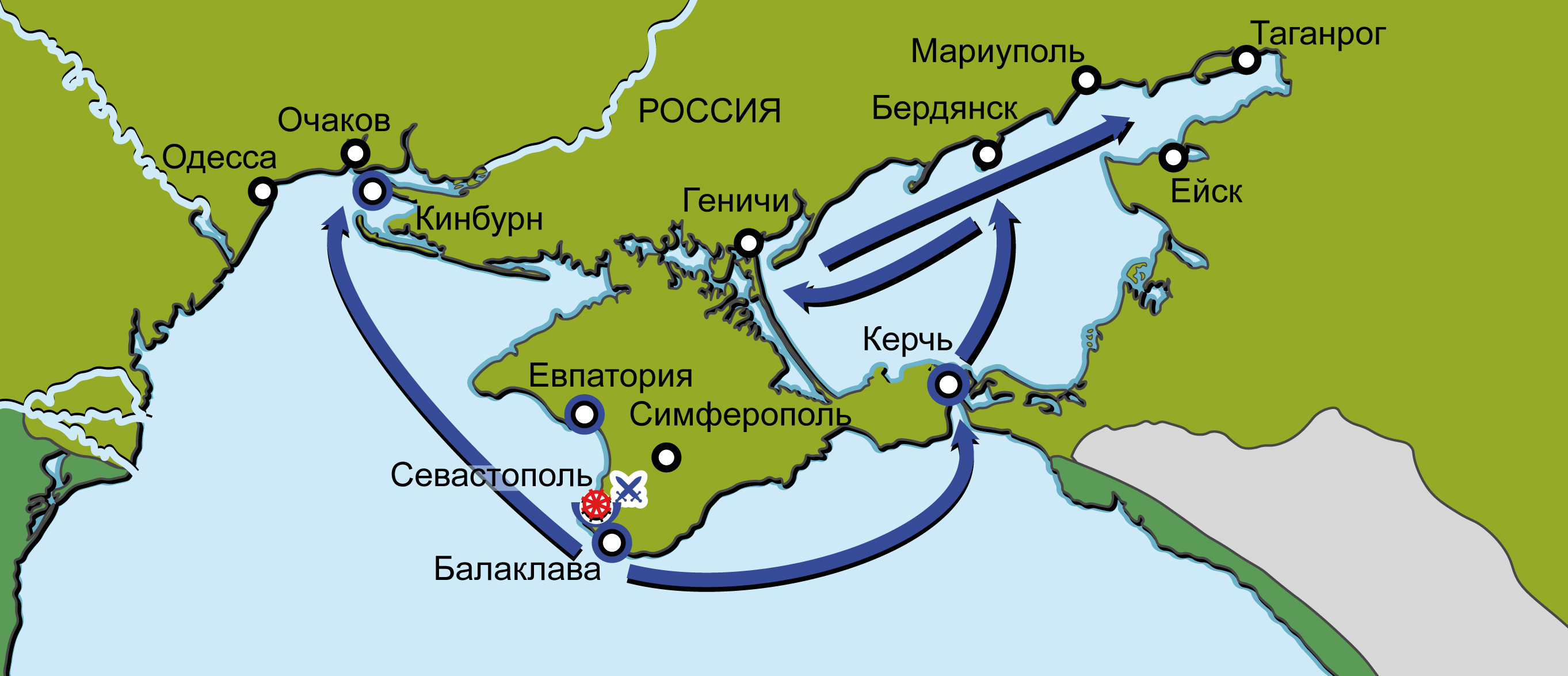 Крымская война 1853–1856 гг. Карта кампании 1855 г. в Крыму и на Черном море