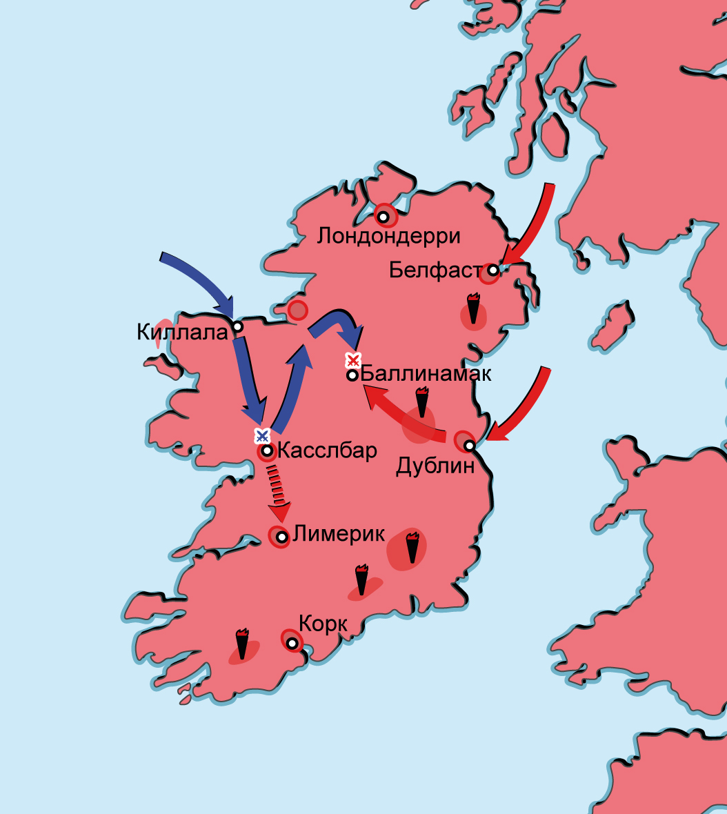 Вторая антифранцузская коалиция 1798–1802 гг. Карта кампании в Ирландии в 1798 г.