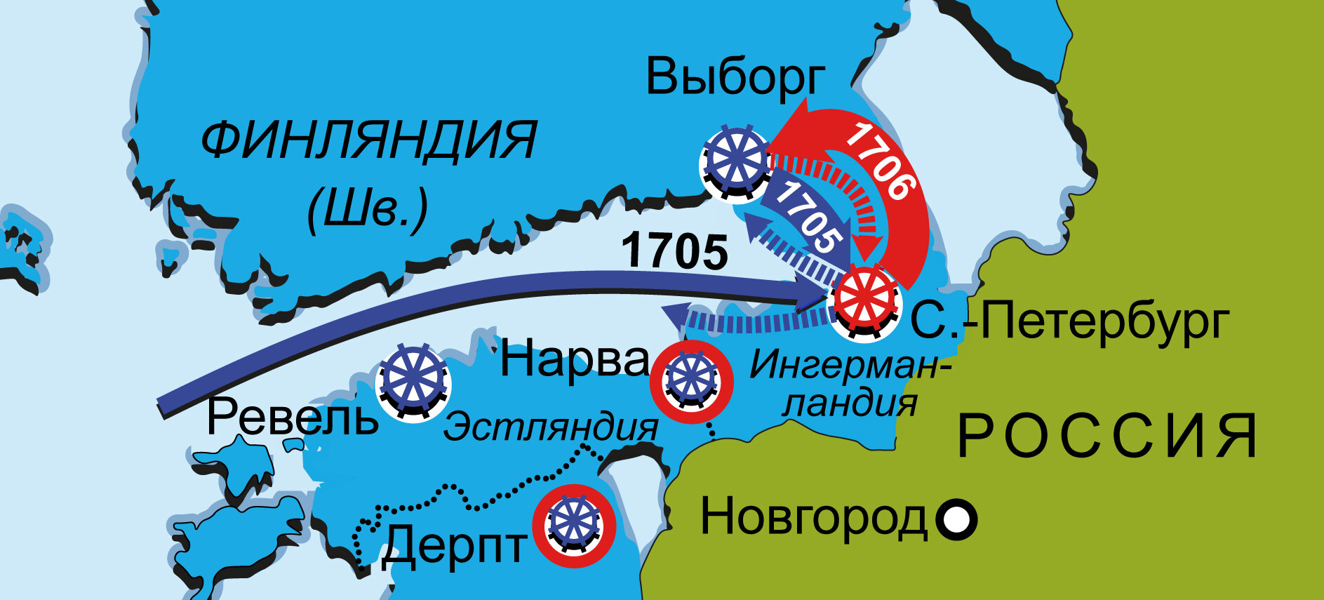 Северная война 1700-1721. Карта кампаний 1705–1706 гг. Действия в Карелии и Ингерманландии
