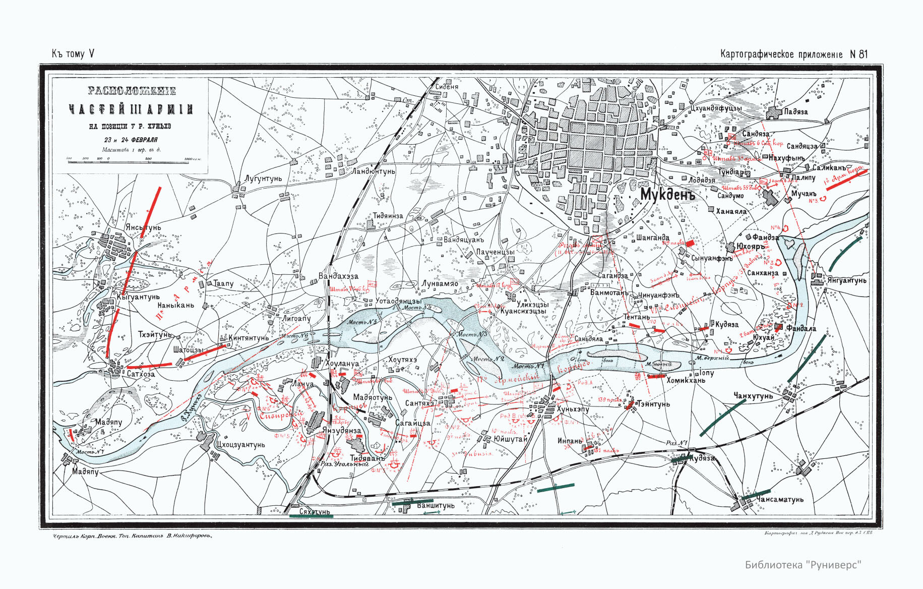 Расположение частей 3-ей армии на позиции у р. Хуньхэ 23 и 24 февраля 1905 г.