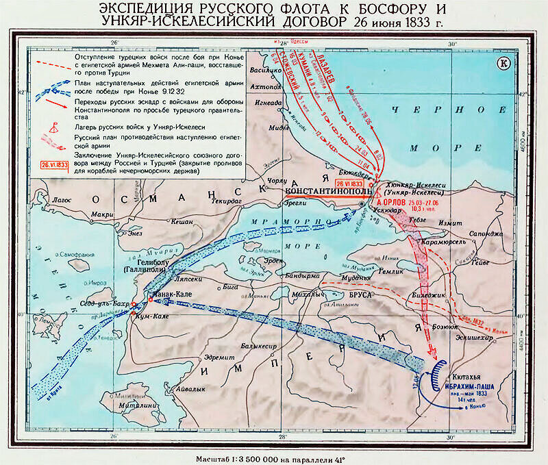 Карта: Экспедиция русского флота к Босфору и Ункяр-Искелесийский договор 26 июня 1833 г.