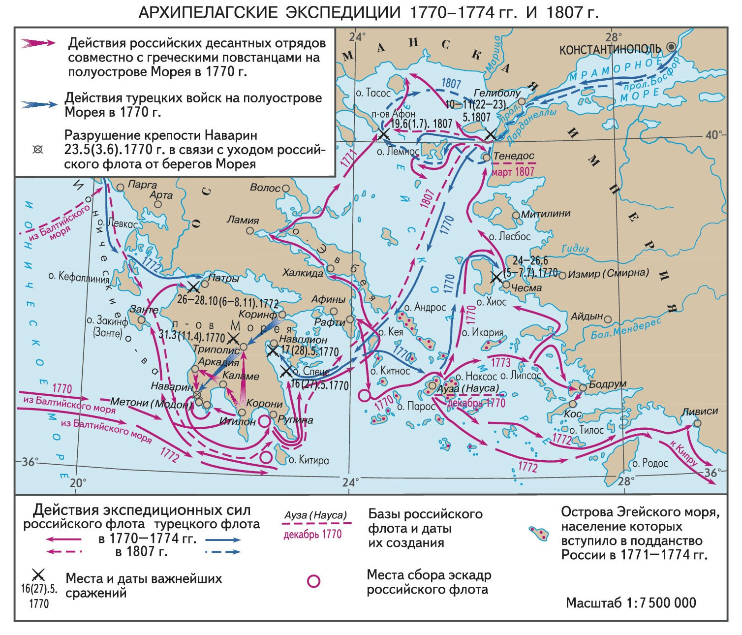 Карта: Архипелагские экспедиции русского флота в 1770 — 1774 и 1807 гг.