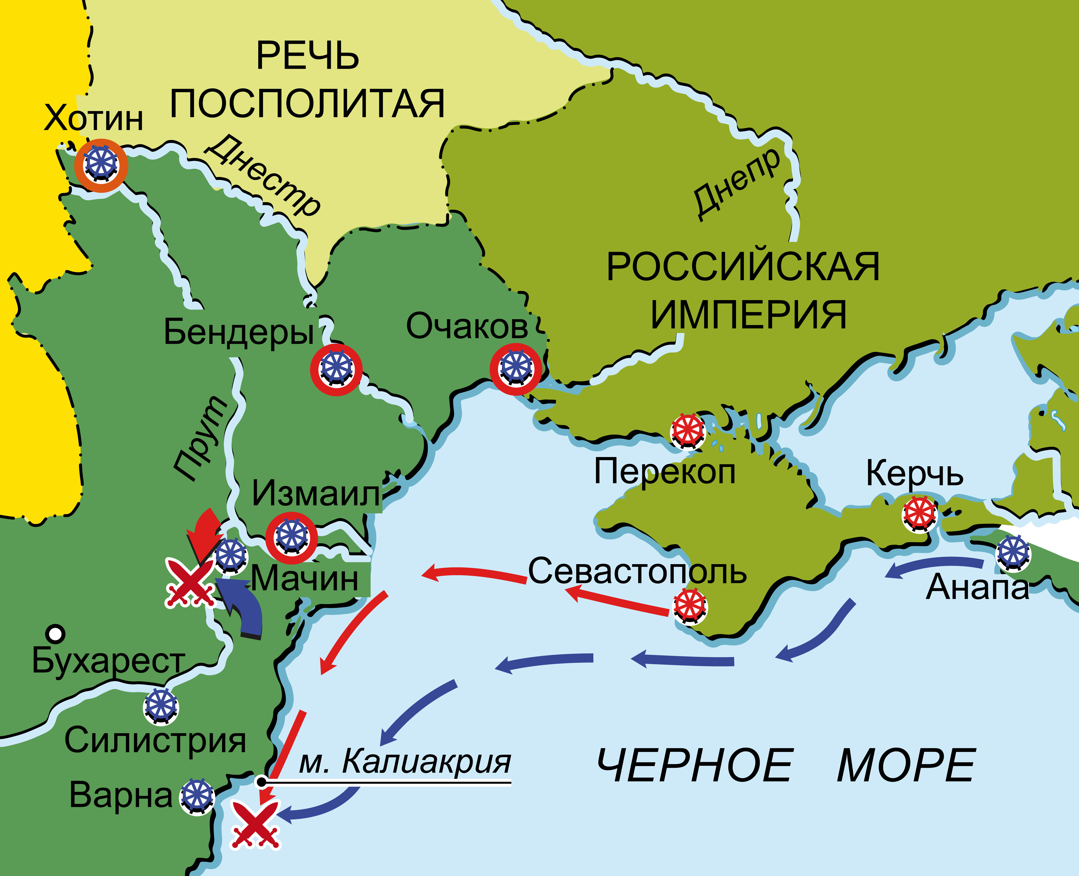Война России и Австрии против Турции 1787–1791 гг. Карта кампании 1791 г. на Дунае и Черном море